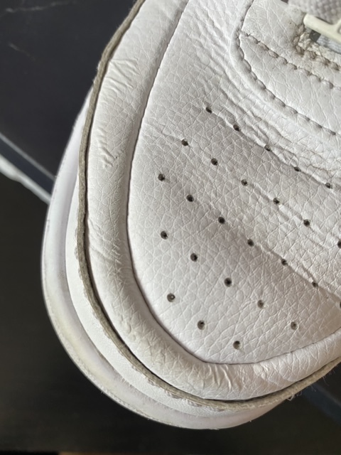 Rozwarstwienie sie materiału , dostanie sie powietrza pod skórę o okolicach zgięcia palców i pękniecie skóry.