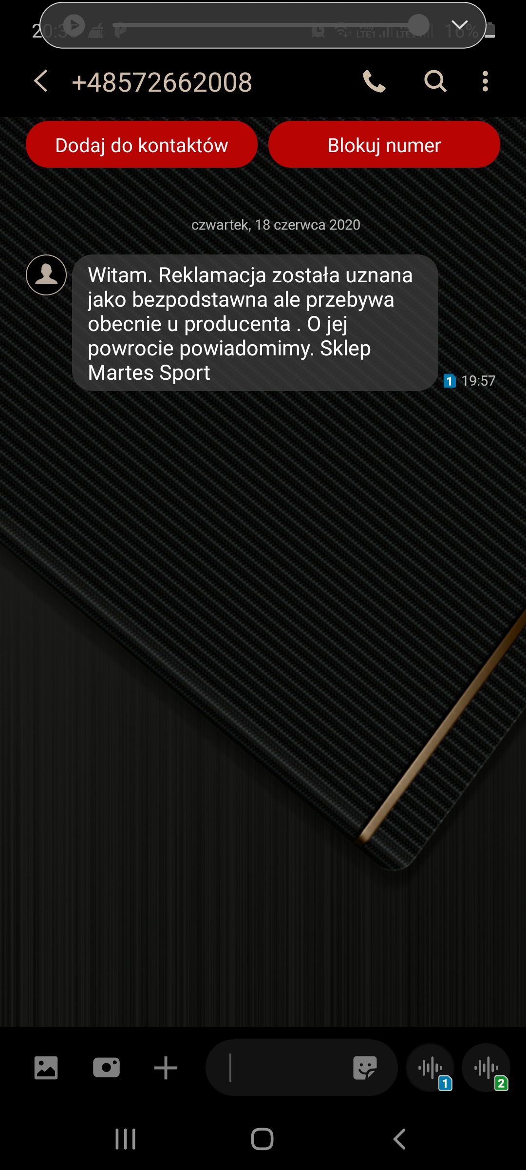 poinformuje dział obsługi klienta Adresata Reklamacji o dodaniu