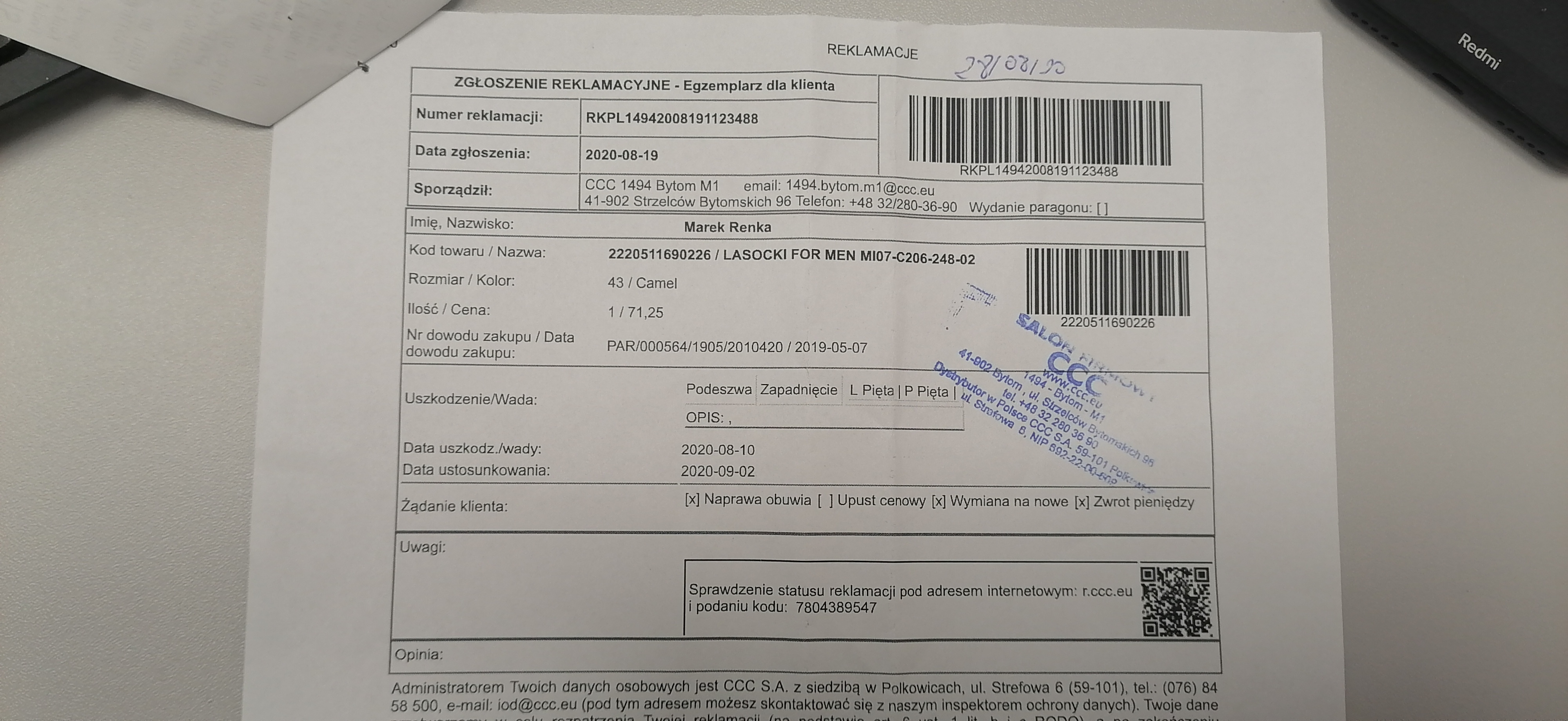 Twojej reklamacji do ogólnodostępnej bazy reklamacji czyuzna.pl.