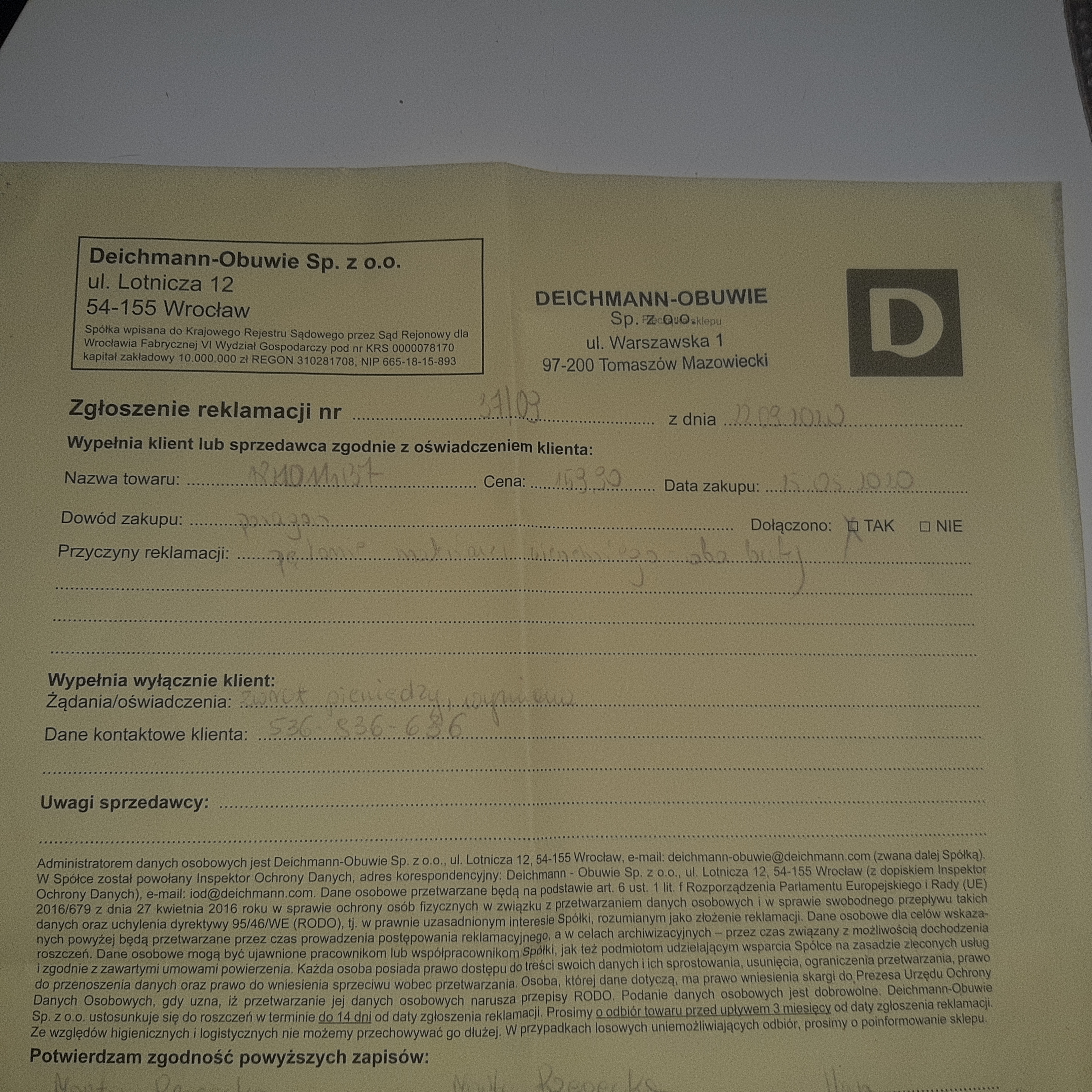 zgłoszenie 1387/2020/Deichmann Obuwie Sp. z o.o.