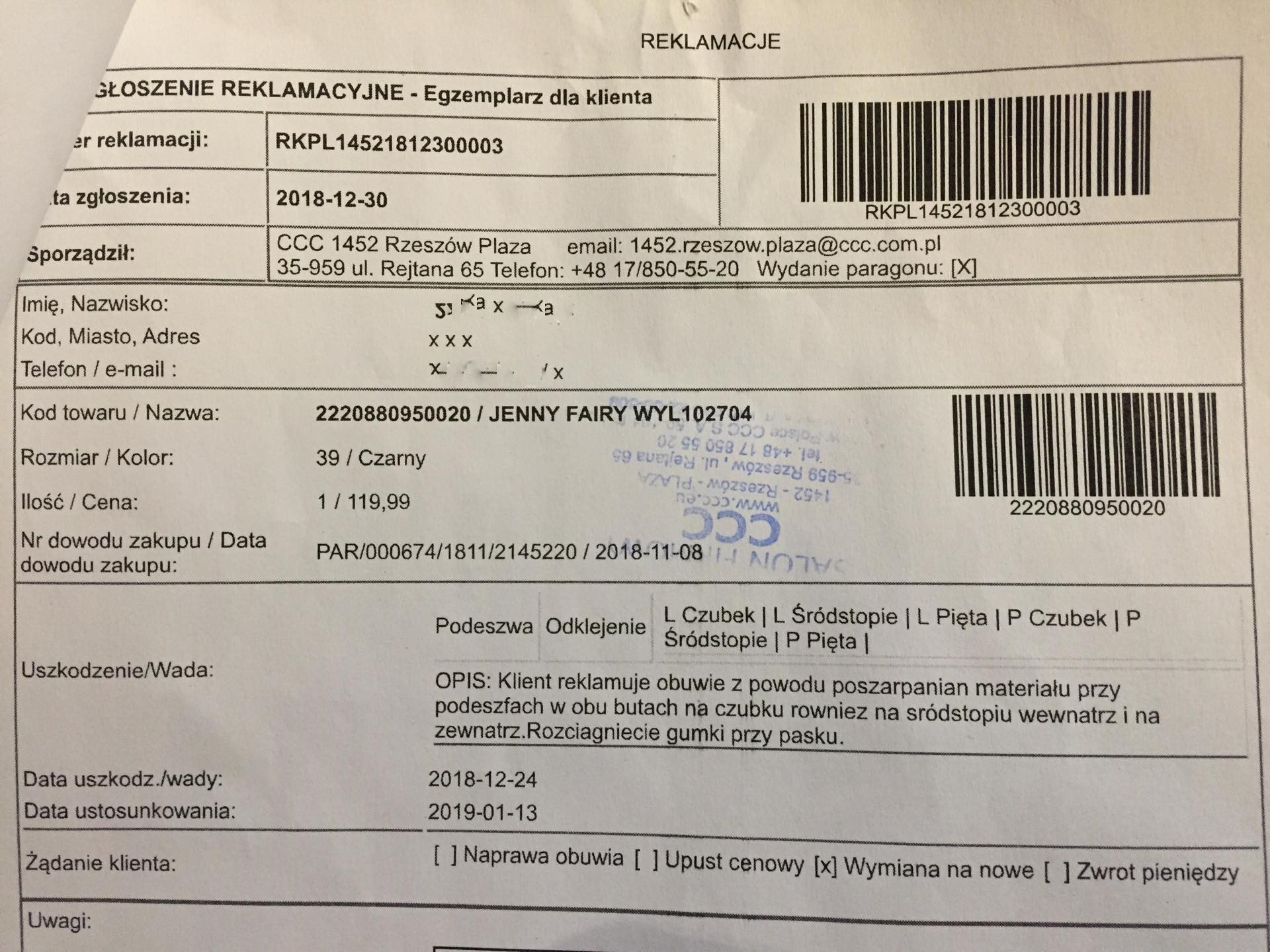 Produkt zgłoszony, kontakt po 13 dniach od zgłoszenia reklamacji z informacją że została uznana, sprzedawcy w CCC bardzo uprzejmi, nie sprawiali żadnych problemów. Polecam każdemu!