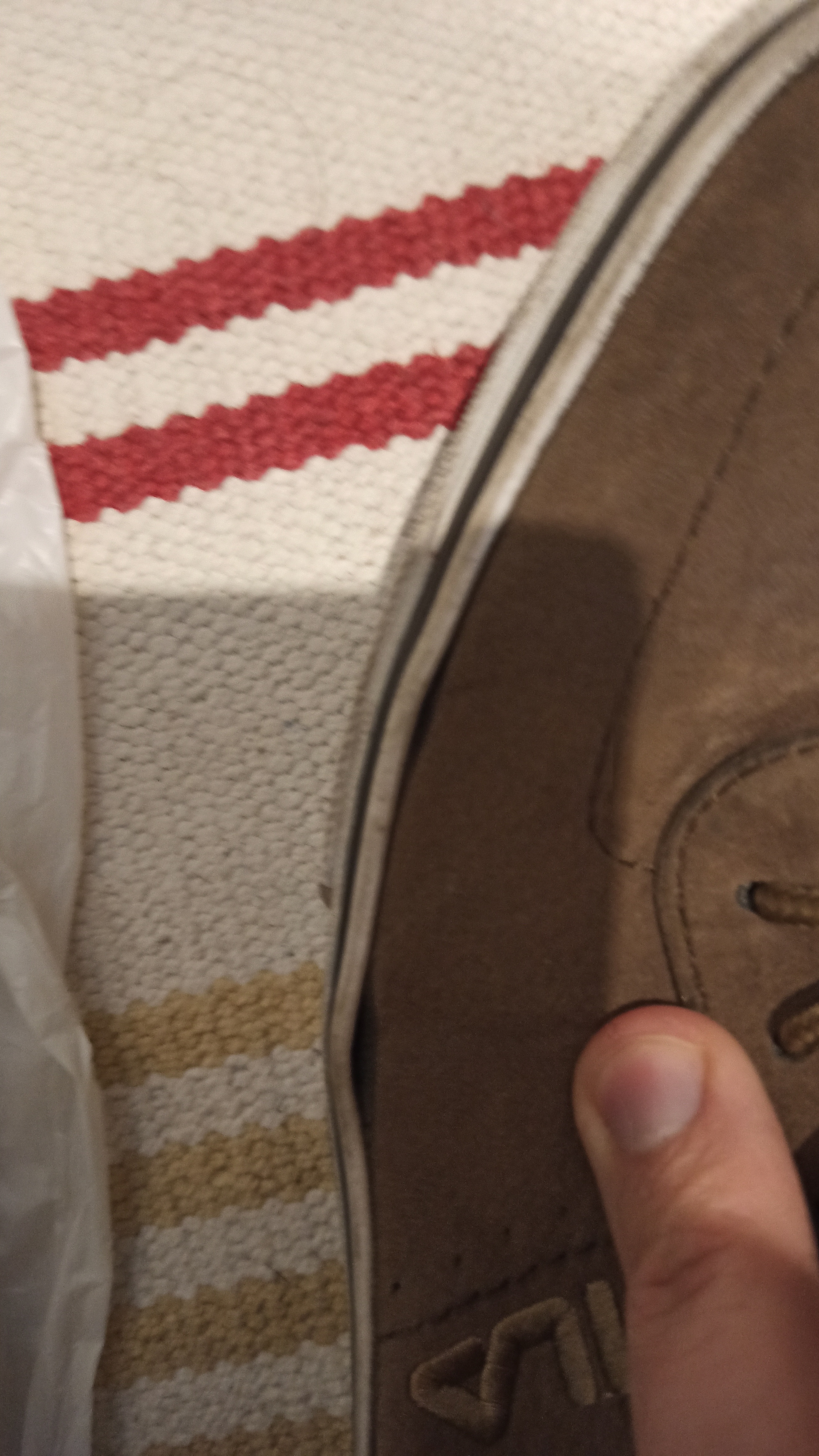 Buty Fila kupione pod koniec zeszłego roku, używane jeden wiosenno-letni sezon. Bez biegania, uprawiania sportów - tylko do chodzenia codziennego. Zaczęła odklejać się podeszwa z boku, chwilę potem pojawiło się to w drugim miejscu. W ciągu kilku dni widocznych jest 5-6 miejsc w obu butach. Nie jest to jedno uszkodzenie, na przykład od uderzenia. Po prostu fabrycznie źle sklejone buty, które nie przetrzymały jednego sezonu.