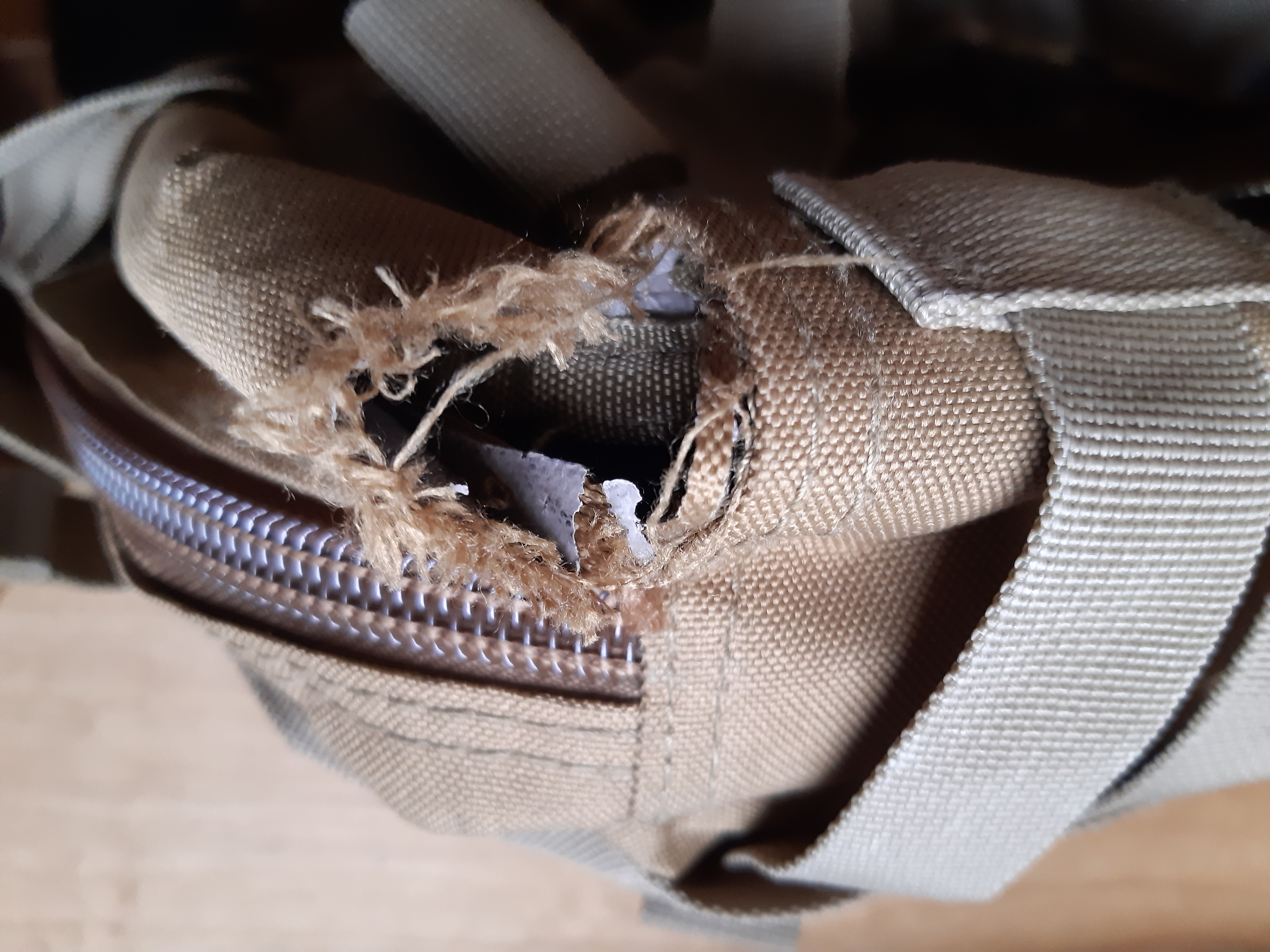 Dziura w plecaku - poszedł szew.