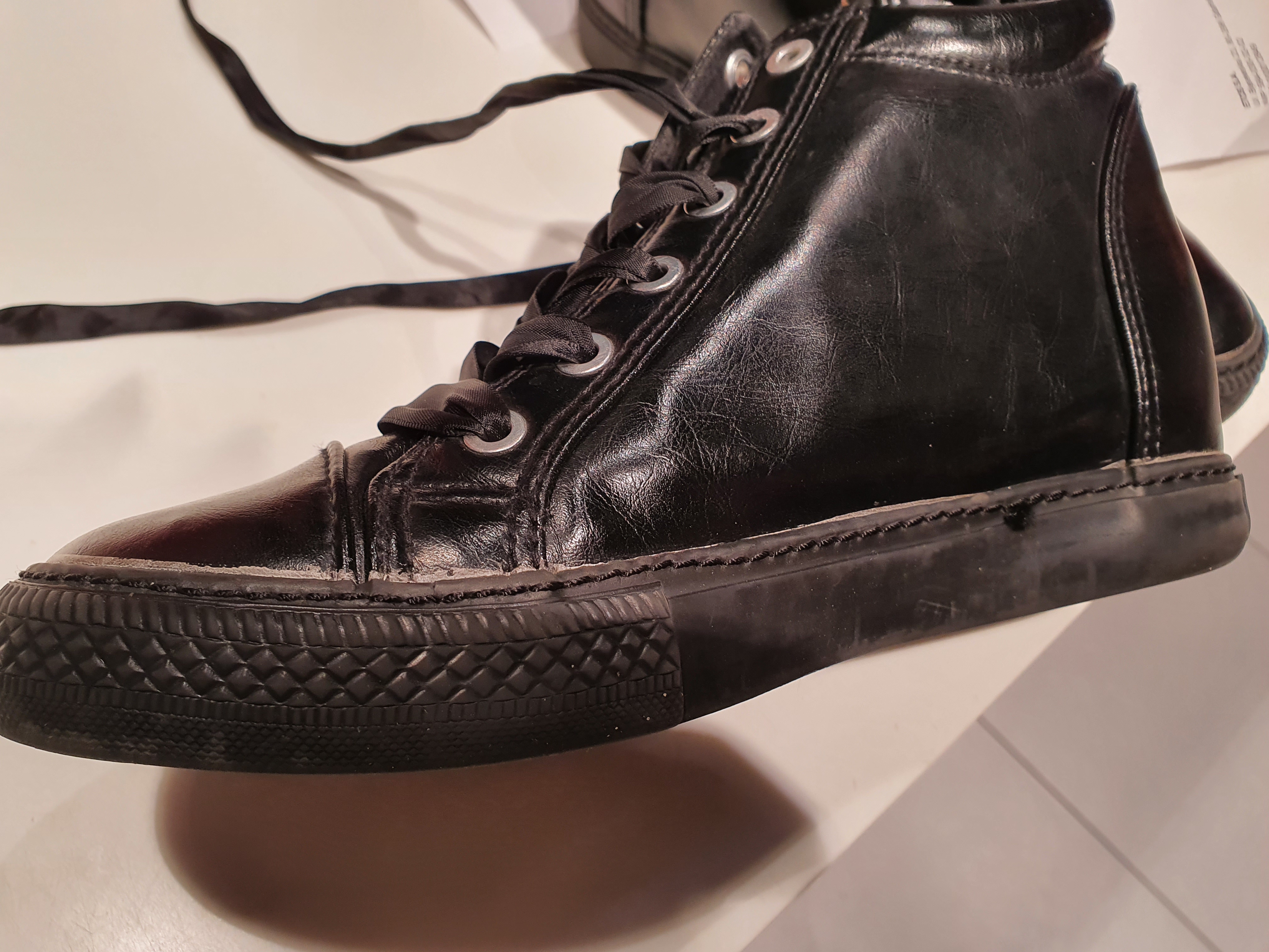 Odwołanie do negatywnie rozpatrzonej reklamacji 496604. Odbarwienie kleju wokół obu butów przy podeszwie. Buty konserwowane i użytkowania w sposób właściwy. Nie zgadzam się z uzasadnieniem do reklamacji nr 496604.