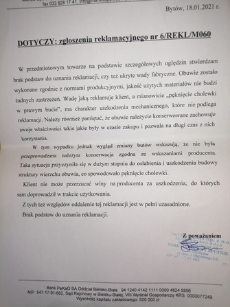 Wg opinii sklepu: uszkodzenie ma charakter uszkodzenia mechanicznego, które nie podlega reklamacji" Dodam,że w ciągu 2 miesięcy użytkowania miałam je na sobie tylko kilka razy- zawsze na leśnych drogach. Zresztą są to buty trekkingowe.....Nie wiem , co ma znaczyć zwrot "Mechaniczne uszkodzenie"?- przecięłam je nożem? Martes po raz kolejny odrzucił reklamacje butów, które u nich kupiła- zamierzam napisać odwołanie, ale nie polecam zakupów w tym sklepie.