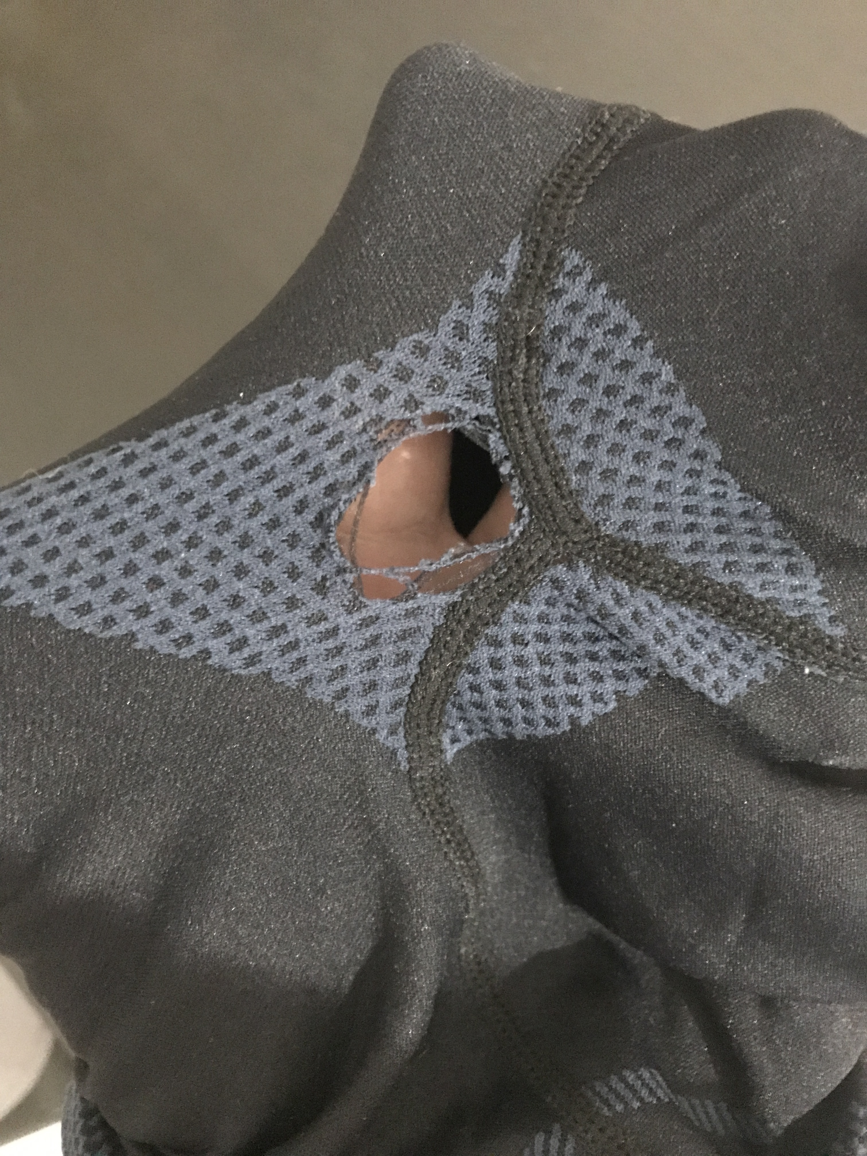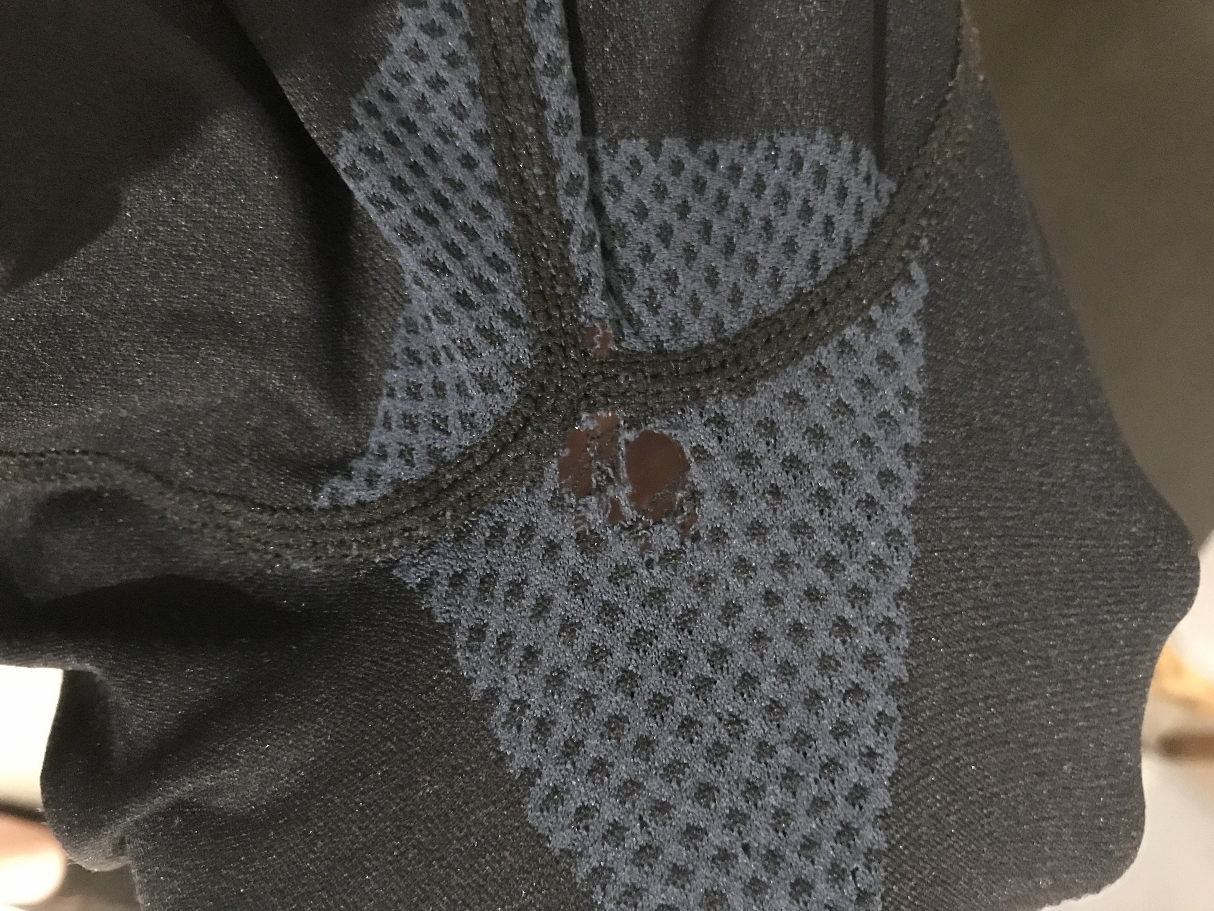 Bluza termiczna była założona dwa razy, po czym pod pachami zrobiły się dziury w rozmiarze monety 5 złotych. Również w niektórych miejscach pojawiły się przetarcia materiału.