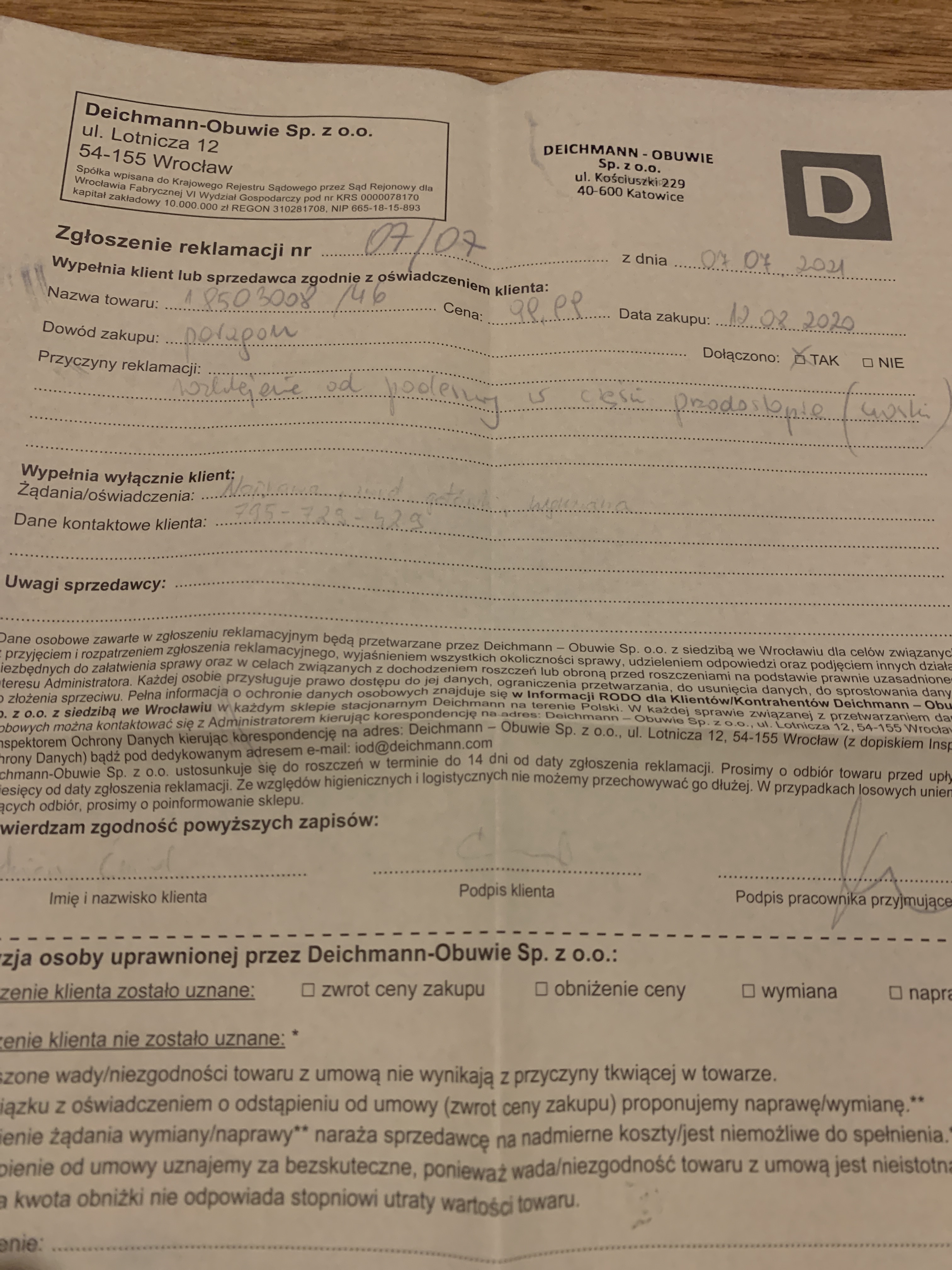 zgłoszenie 2042/2021/Deichmann