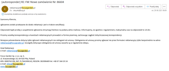 poinformuje dział obsługi klienta Adresata Reklamacji o dodaniu