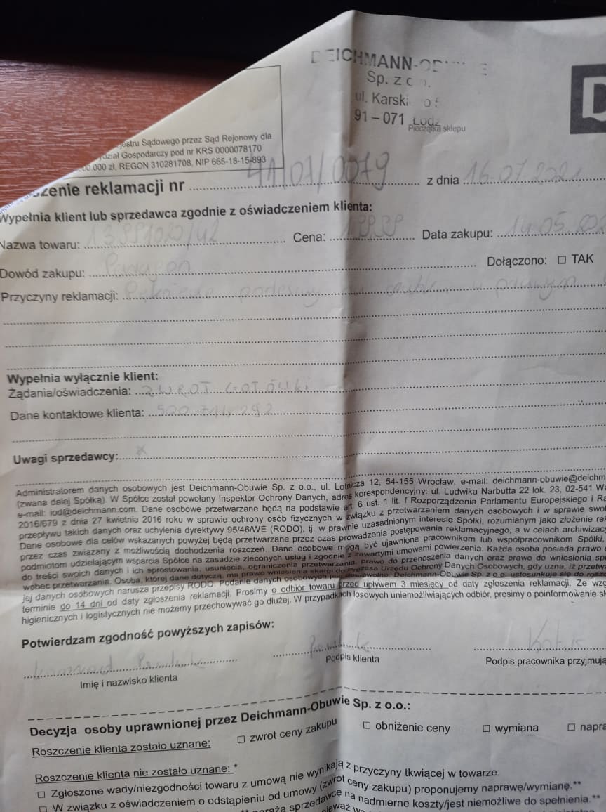 Nie została uznana reklamacja butów z których korzystałem delikatnie ponad dwa miesiące. Przy moim aktualnym trybie życia (praca zdalna, studia zdalne z sesją od czerwca) nie zgadzam się z wynikiem, ponieważ buty nie były wykorzystywane w nadmierny sposób, który mógłby spowodować uszkodzenie.