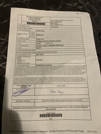 Odwołanie od reklamacji numer PR/2021/05/08034 , jestem zbulwersowana odpowiedzią na reklamacje, buty zostały zasznurowane wyrażając szacunek Państwu, następnym razem buty oddam ubrudzone, odmawiając reklamacji zaczynam działać u Rzecznika Praw Konsumenta, nie pozostawię tej sprawy bo zachowali się Państwo okropnie. Żądam rozpatrzenia reklamacji ponownie, przetarcia a wręcz łuszczenie skory nie ma żadnego związku z rzekomo zawiązanymi sznurówkami, sznurówki do reklamacji zostały zawiązane celem szacunku do Państwa !!!!