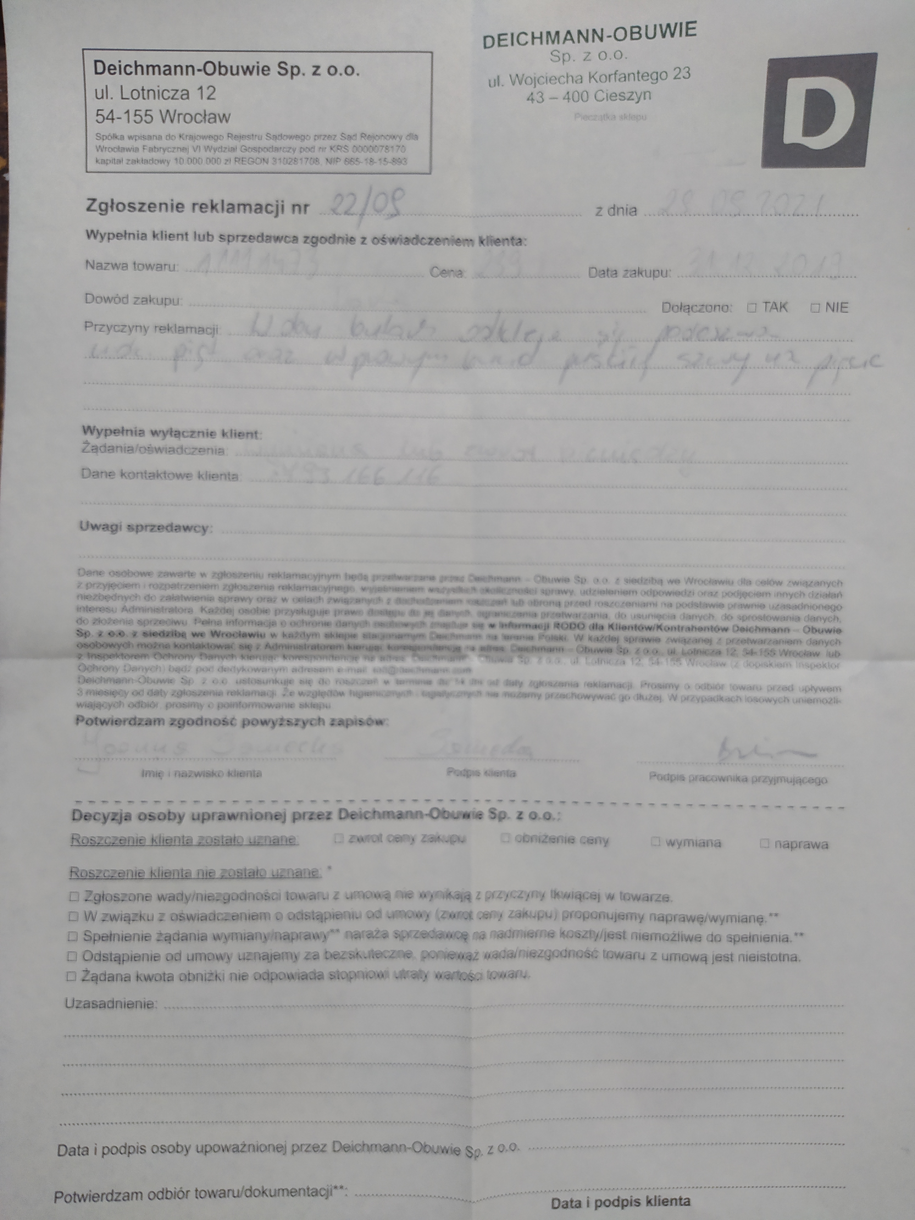 Twojej reklamacji do ogólnodostępnej bazy reklamacji czyuzna.pl.