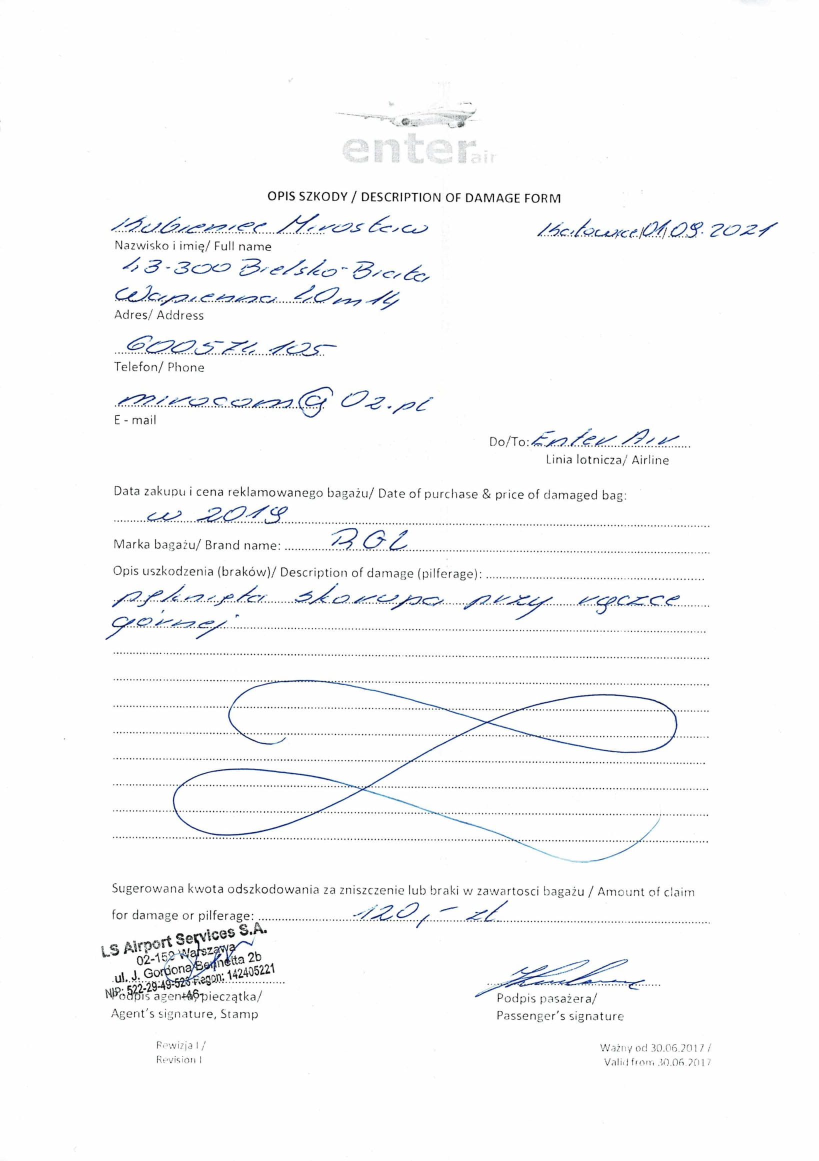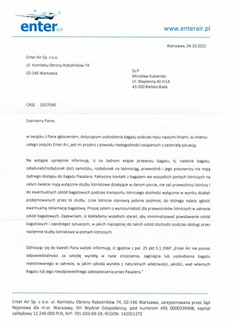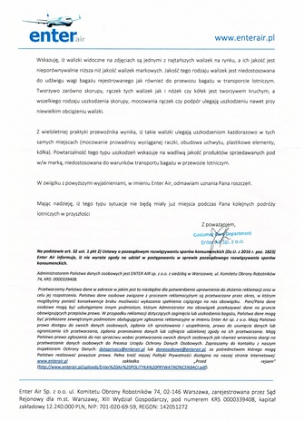 poinformuje dział obsługi klienta Adresata Reklamacji o dodaniu