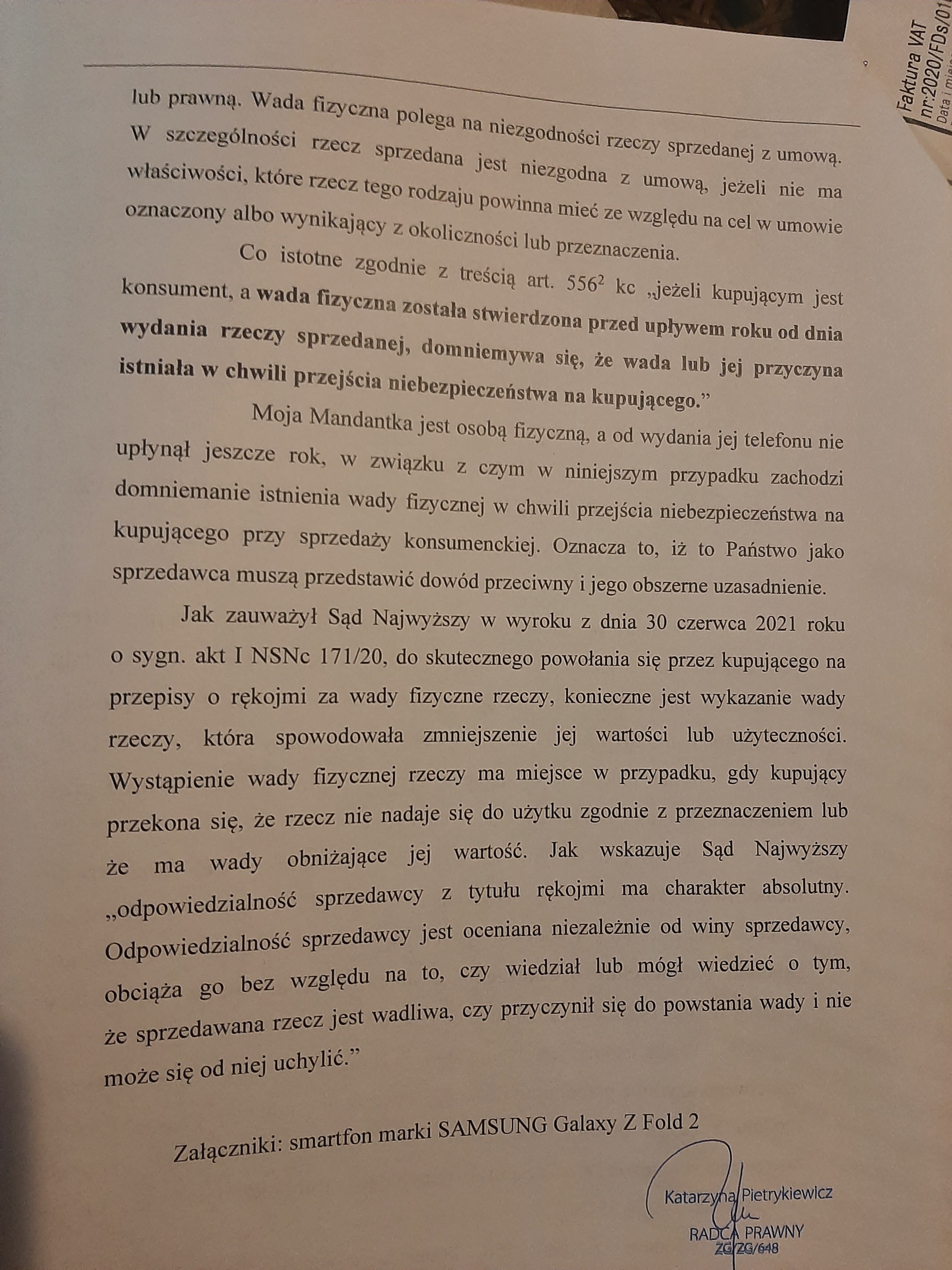 poinformuje dział obsługi klienta Adresata Reklamacji o dodaniu