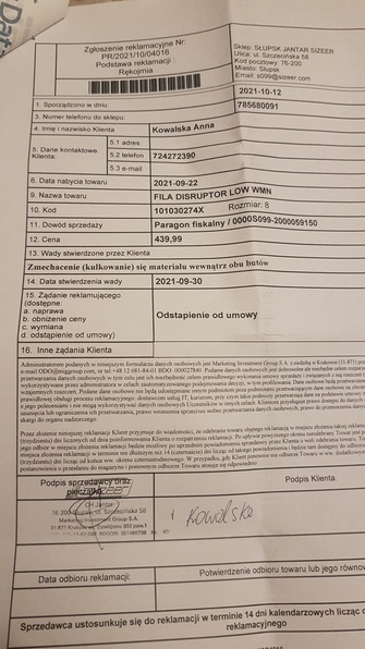 Buty kosztowały 439.99 złotych. Po takiej cenie oczekiwałam dobrej jakości. Jednak materiał wewnątrz buta jest bardzo niskiej jakości skoro po niecałych 3 tygodniach niezbyt intensywnego użytkowania materiał się mechaci w środku. Wygląda to bardzo nieestetycznie. Żądam zwrotu pieniędzy za towar który nie jest zgodny z umową.