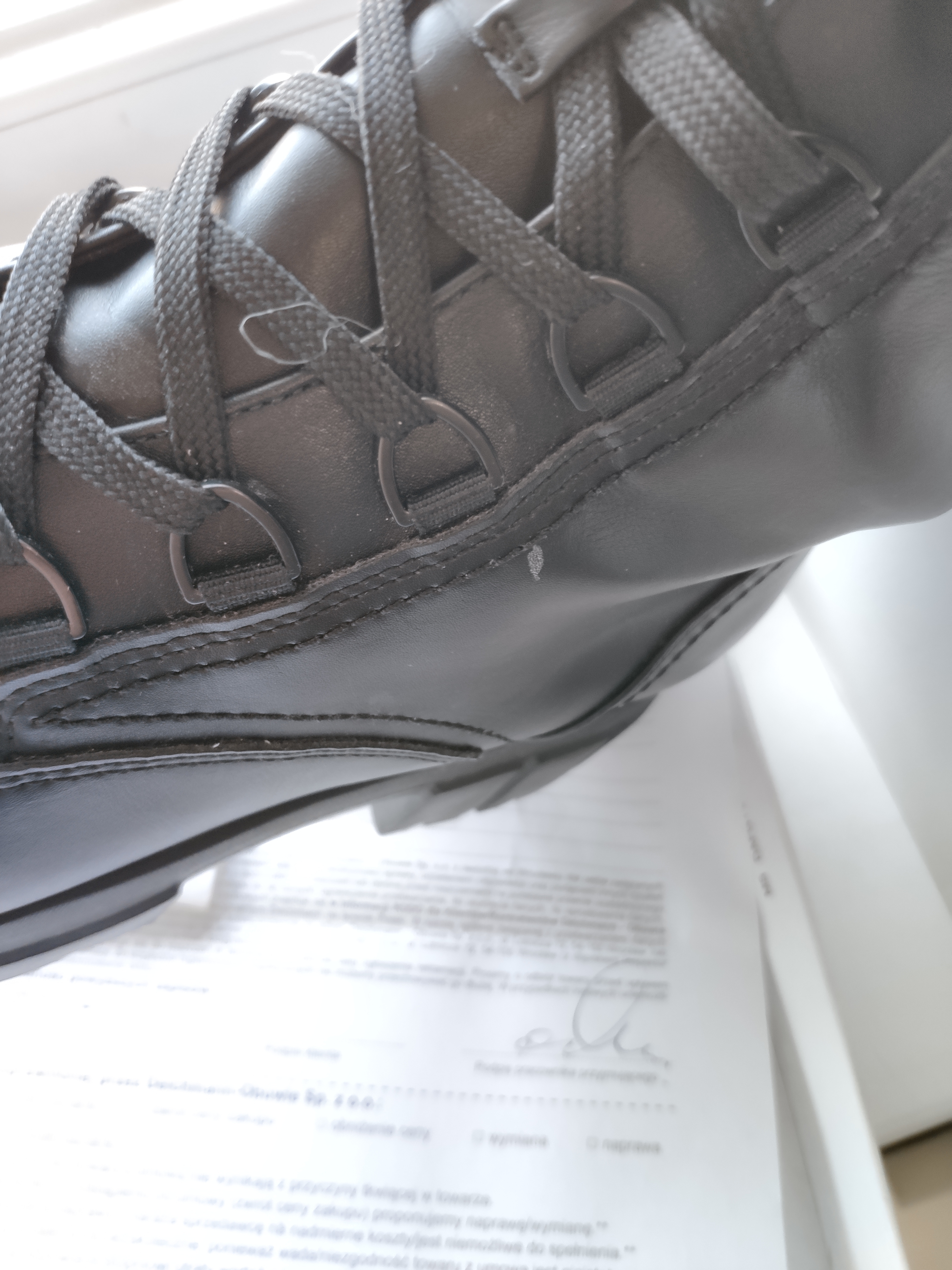Odbarwienia jasne na wierzchnim materiale na prawym bucie (wcześniej buty były impregnowane w sklepie w Gdańsku przy zakupie - imbox)
