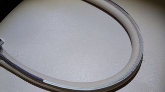 Odlejony lak (lamowanie) na nimał całej długości linii brzegowych uchwytów torebki.