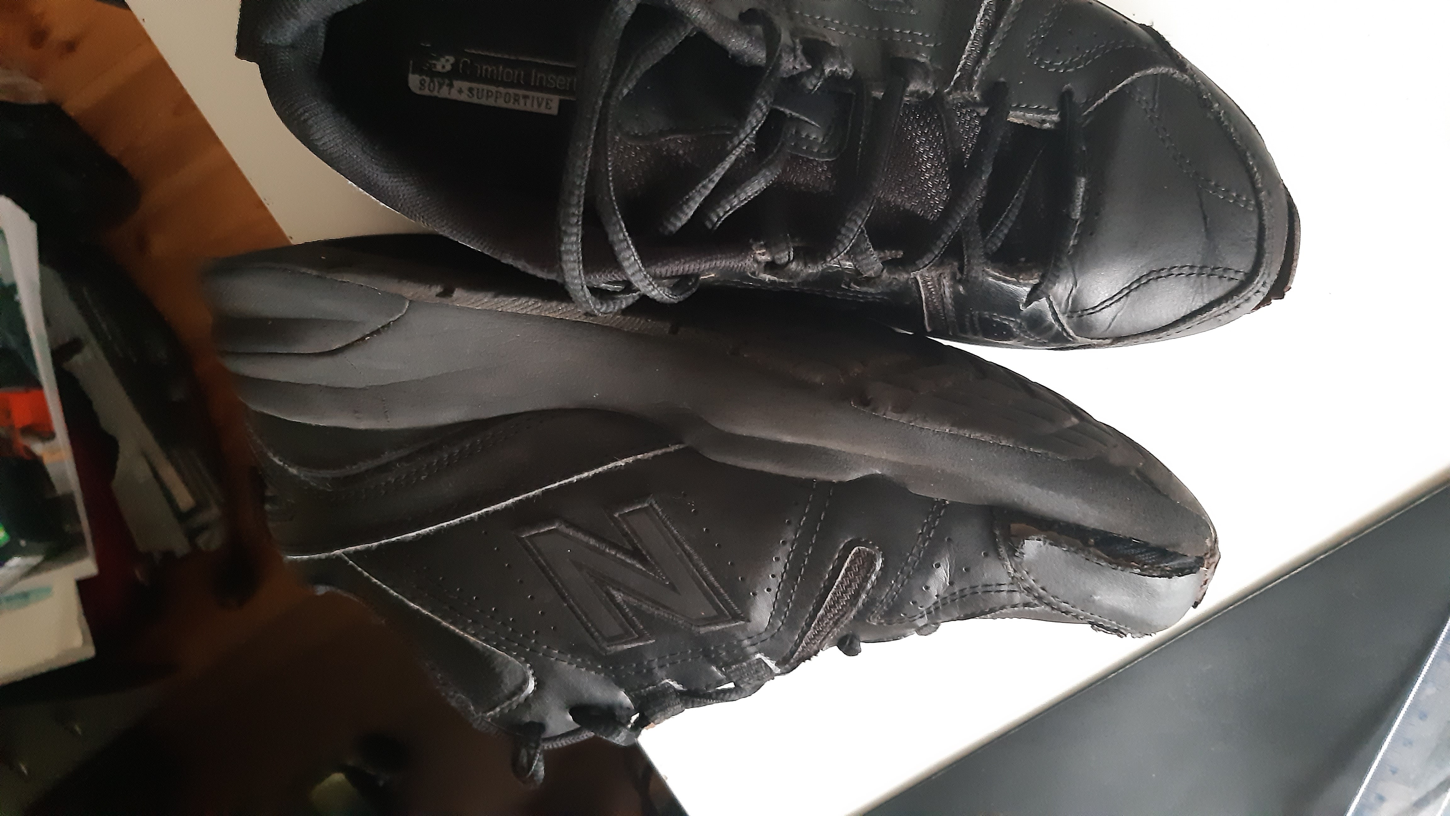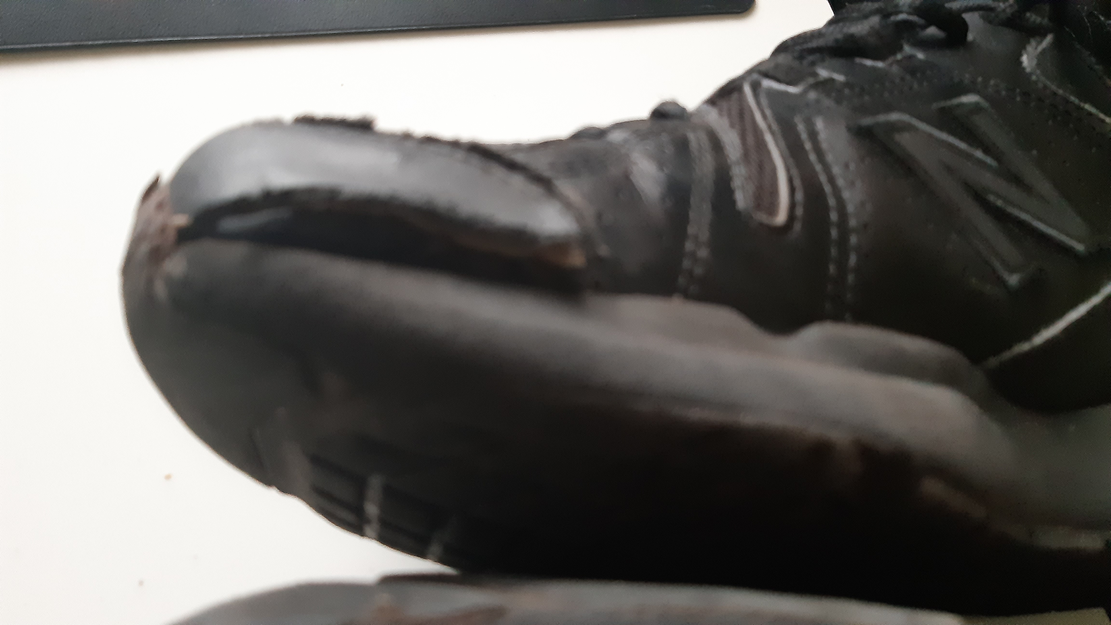 Rozklejenie nosków w obu butach,pęknięcie przy podeszwie w prawym bucie