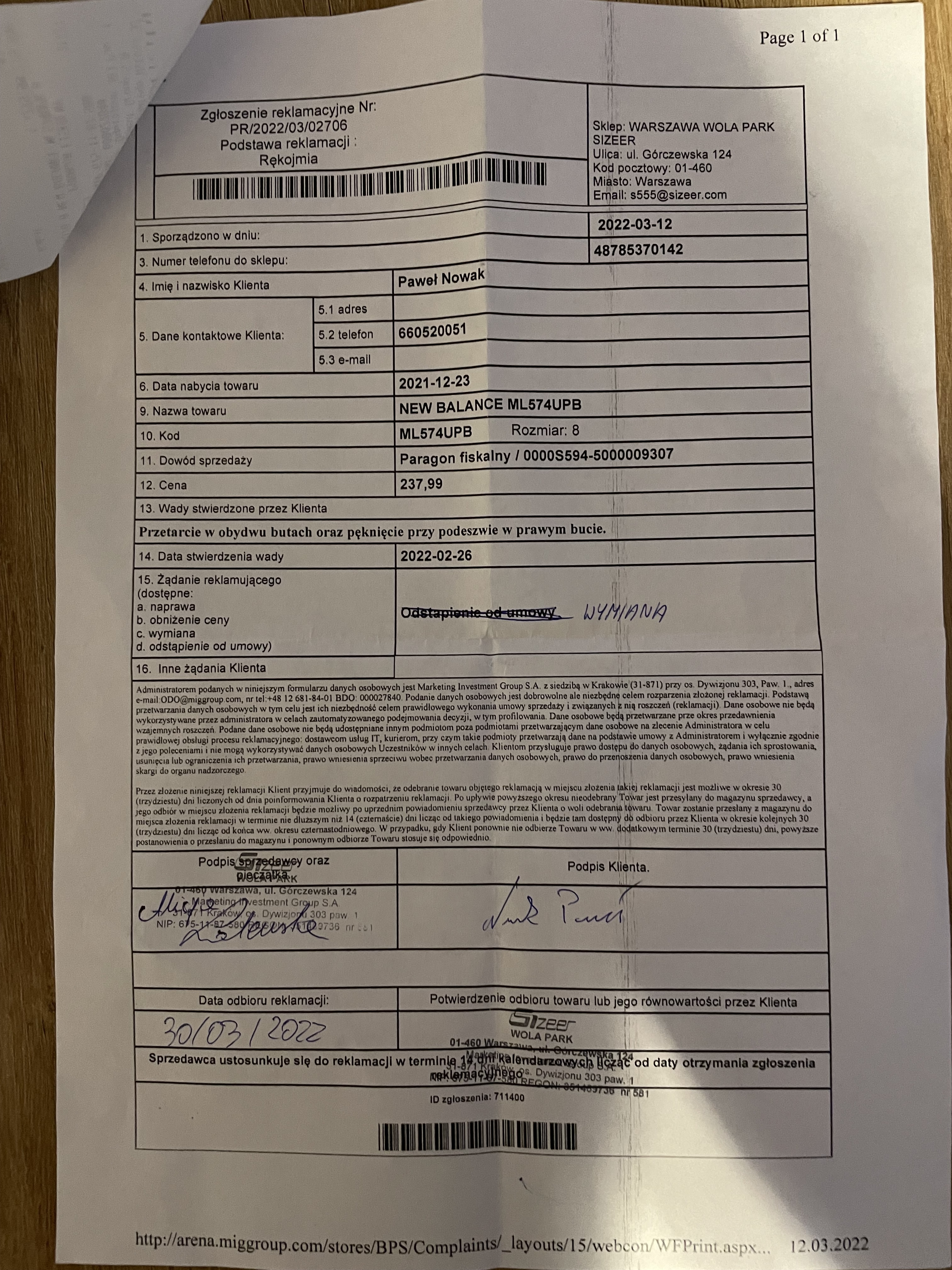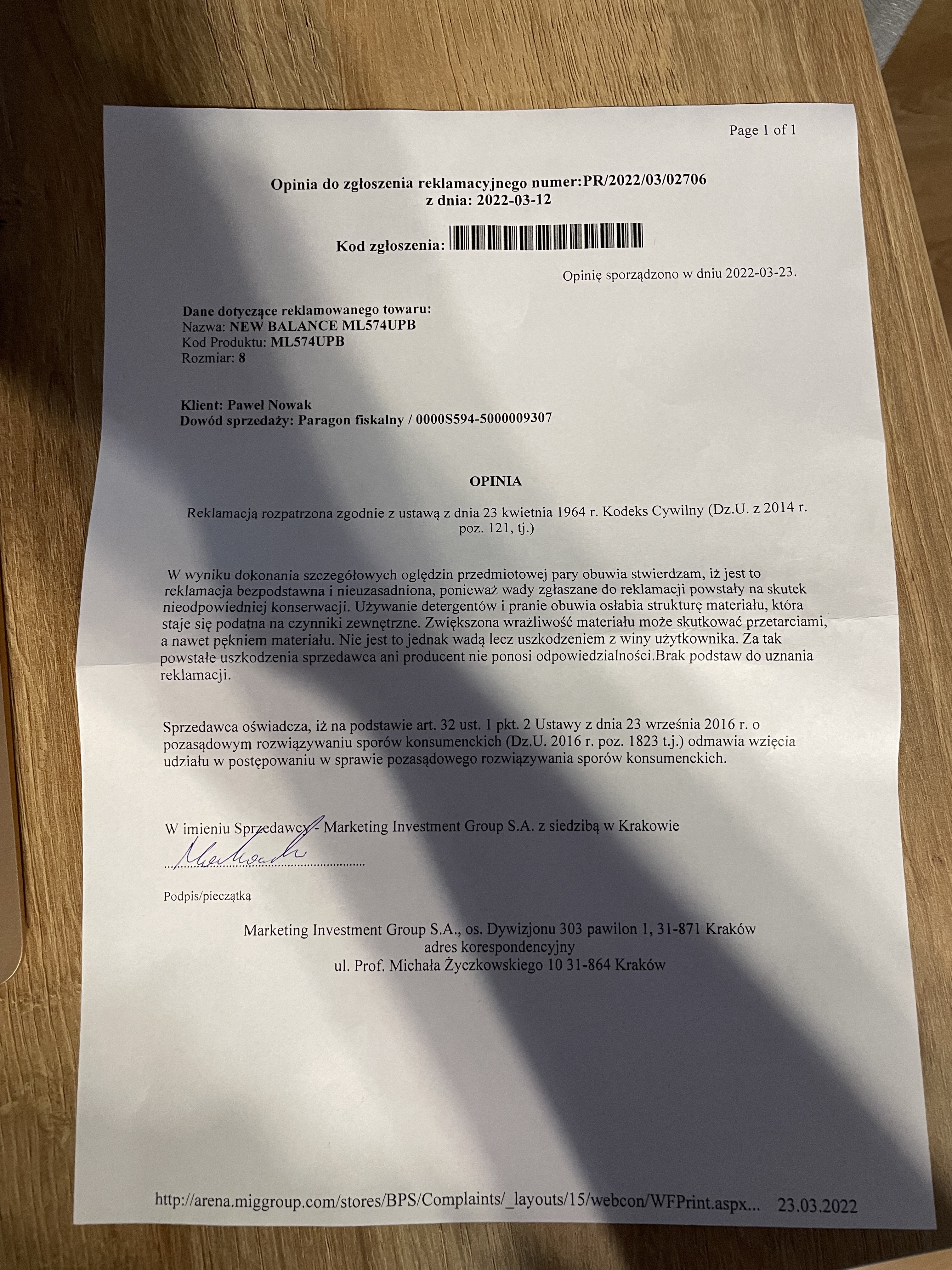 Twojej reklamacji do ogólnodostępnej bazy reklamacji czyuzna.pl.
