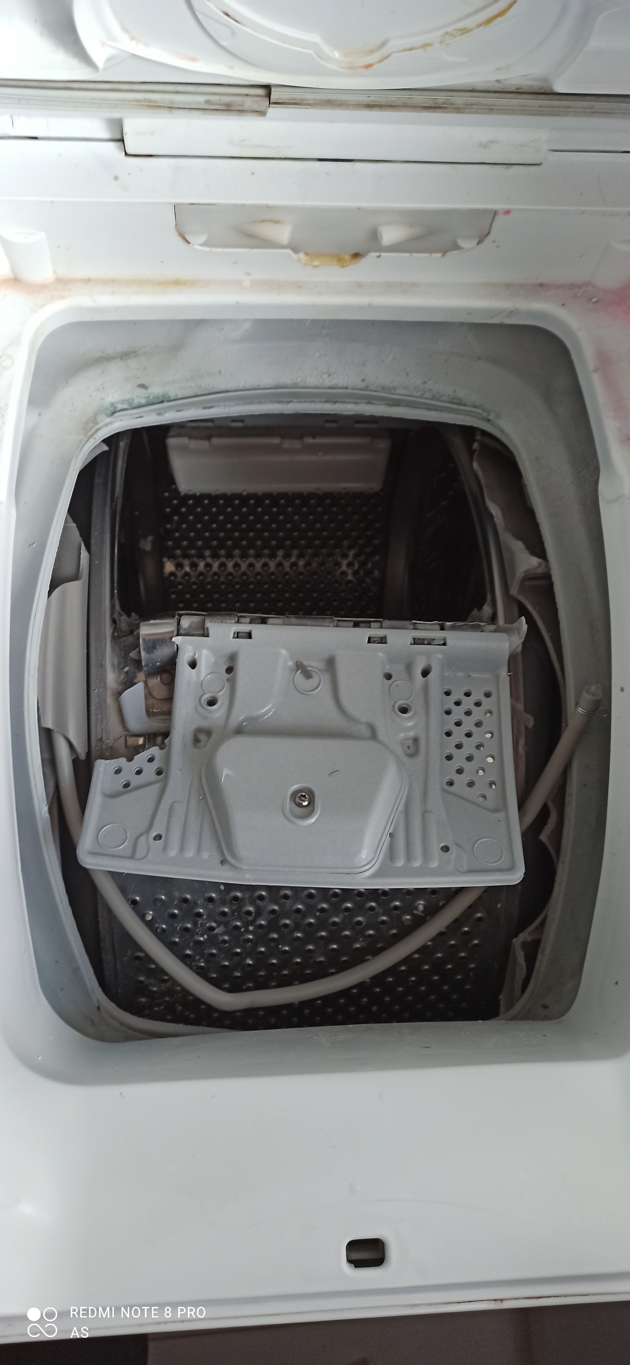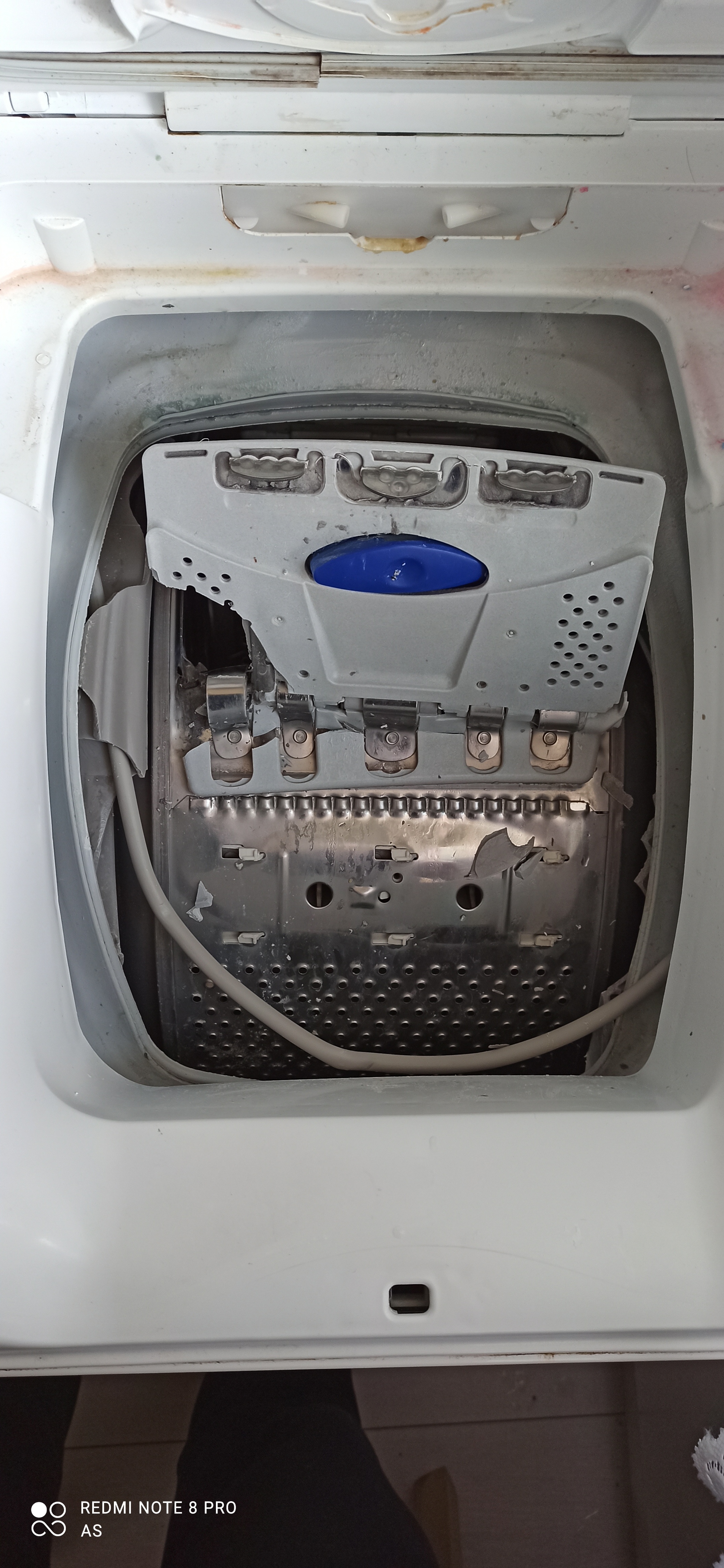 Podczas wirowania w ostatniej fazie prania słychać było głośny huk dobiegający z pralki po tym zdarzeniu pralka się zatrzymała.Po zaglądnięciu do środka okazało się że bęben i plastiki są uszkodzone.Bylo to w ostatniej fazie codziennego normalnego prania