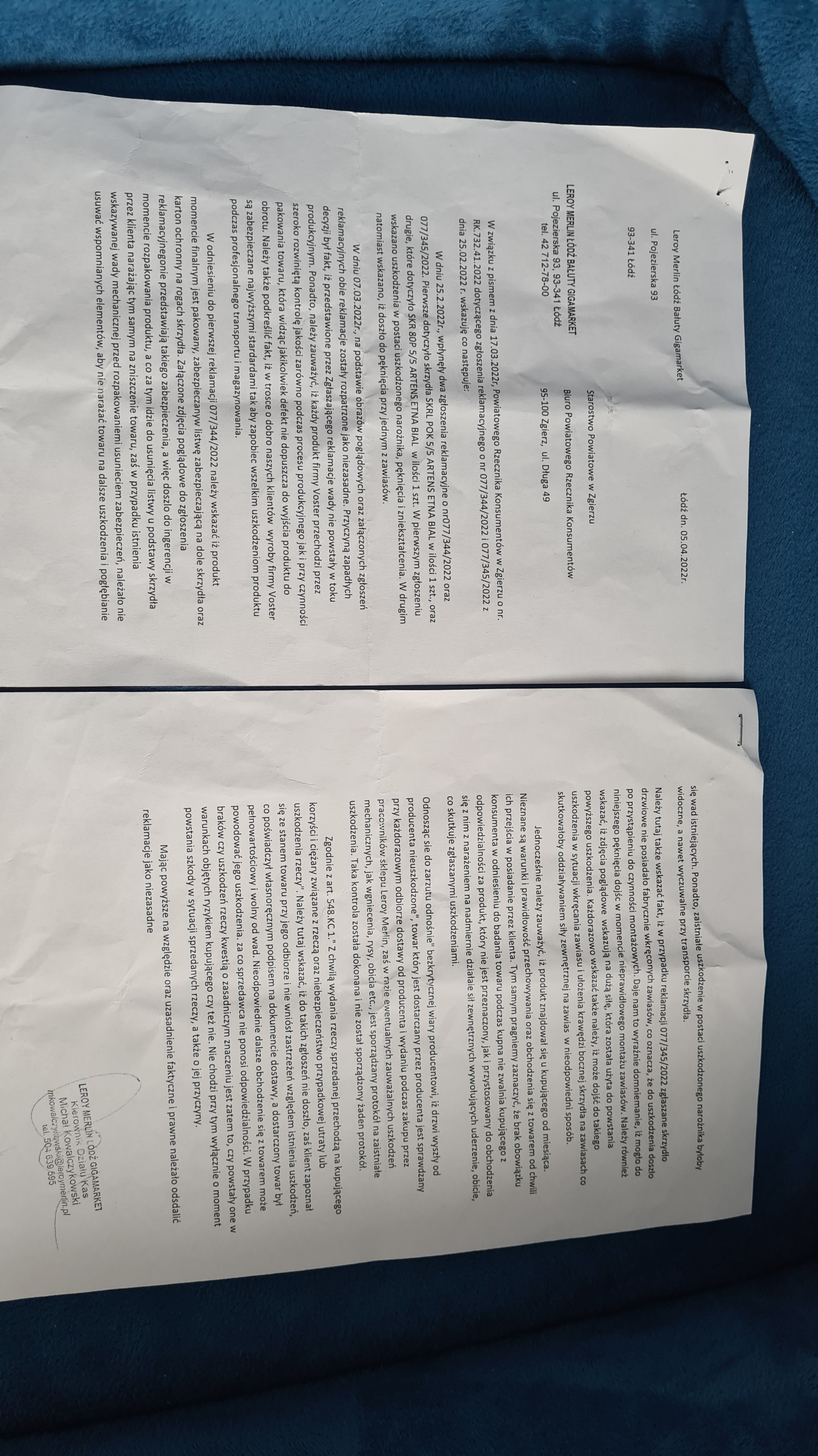 Ponowna interwencja Powiatowego Rzecznika Konsumentów także nie uznana przez sklep Reloy Merlin.