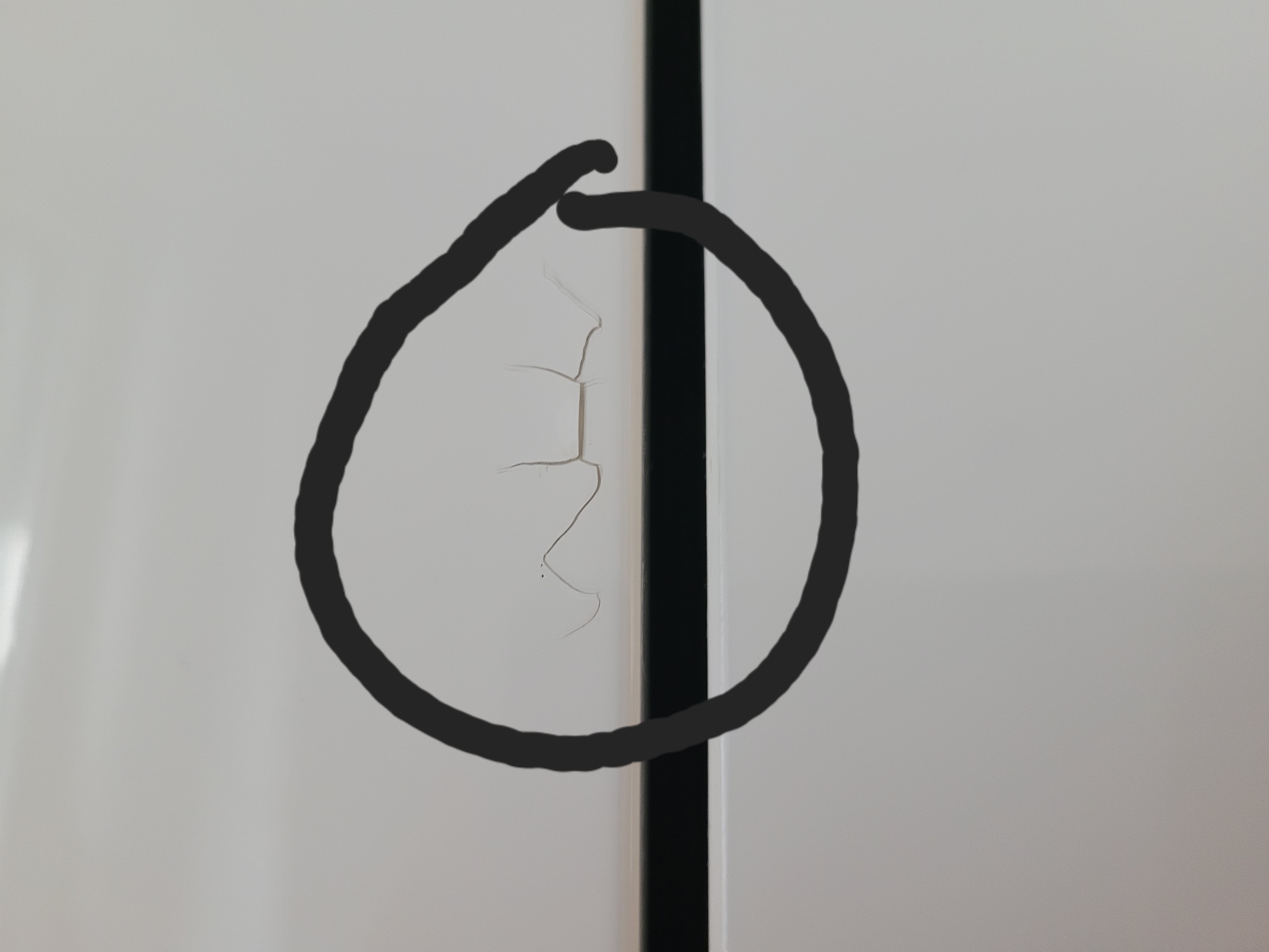 Pękanie lakieru na dwóch frontach i rozwarstwienie dwóch narożników