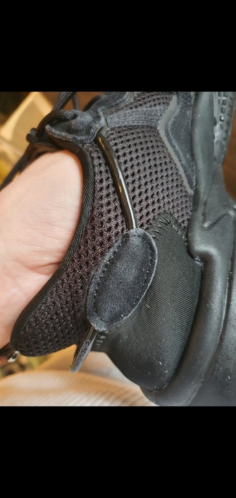 Wyblaknięcie materiału po ekspozycji na słońce, napisy wewnątrz obuwia odkleiły się po drugim założeniu obuwia, ogólny wygląd buta jest nieestetyczny.