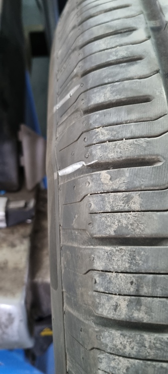Wybrzuszenie/guz na nowej oponie. W nowo założonej oponie, po tygodniu jazdy zaczęły się drgania. Wulkanizator podczas ponownego wyważania zauważył wybrzuszenie na bocznej części opony (widoczne na załączonym zdjęciu). Prawdopodobnie wulkanizator, który zakładał nową oponę nie zauważył wybrzuszenia lub też tego wybrzuszenia nie było. Proszę o weryfikację i pozytywne rozpatrzenie gwarancji.
