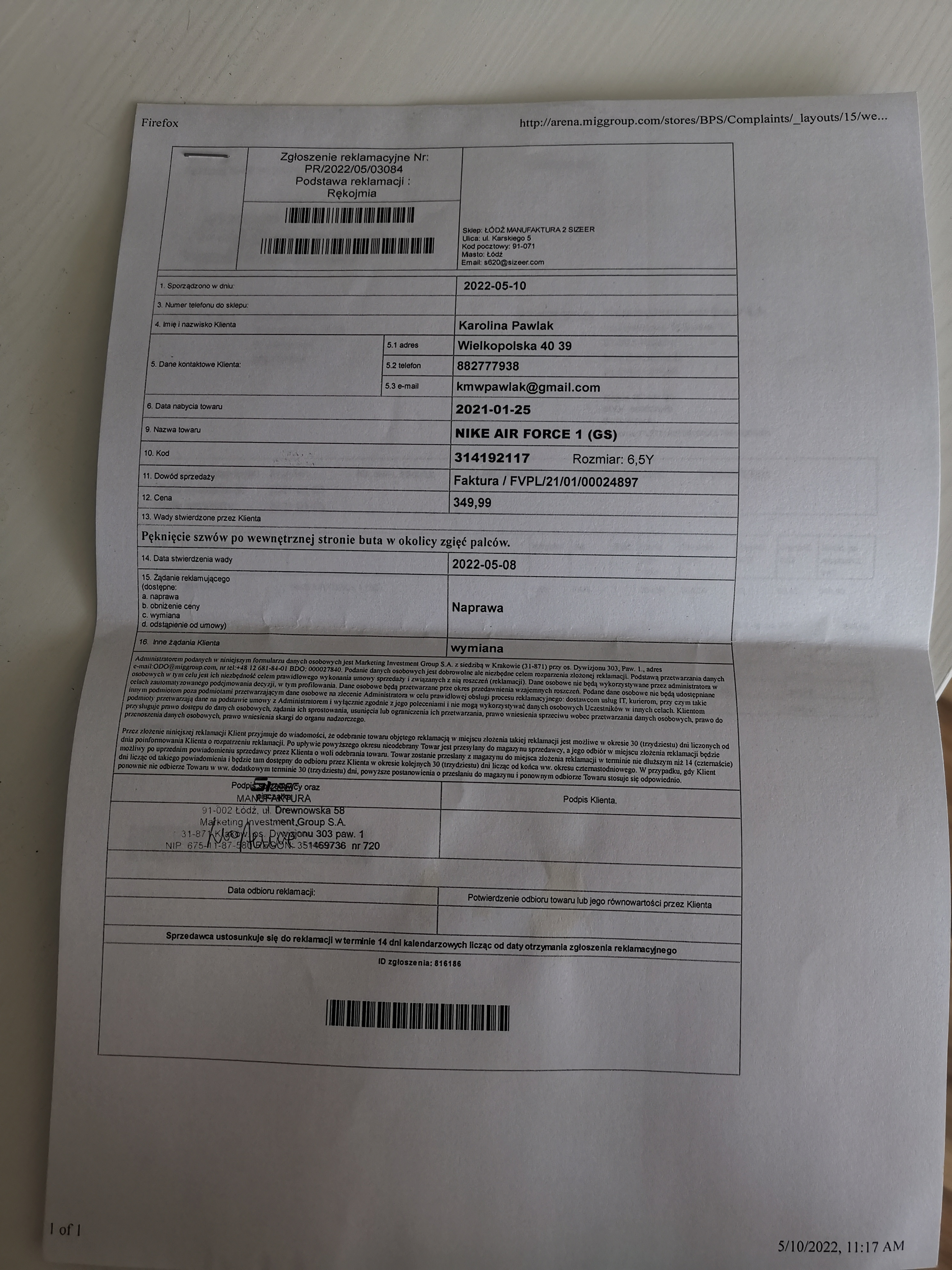 Twojej reklamacji do ogólnodostępnej bazy reklamacji czyuzna.pl.