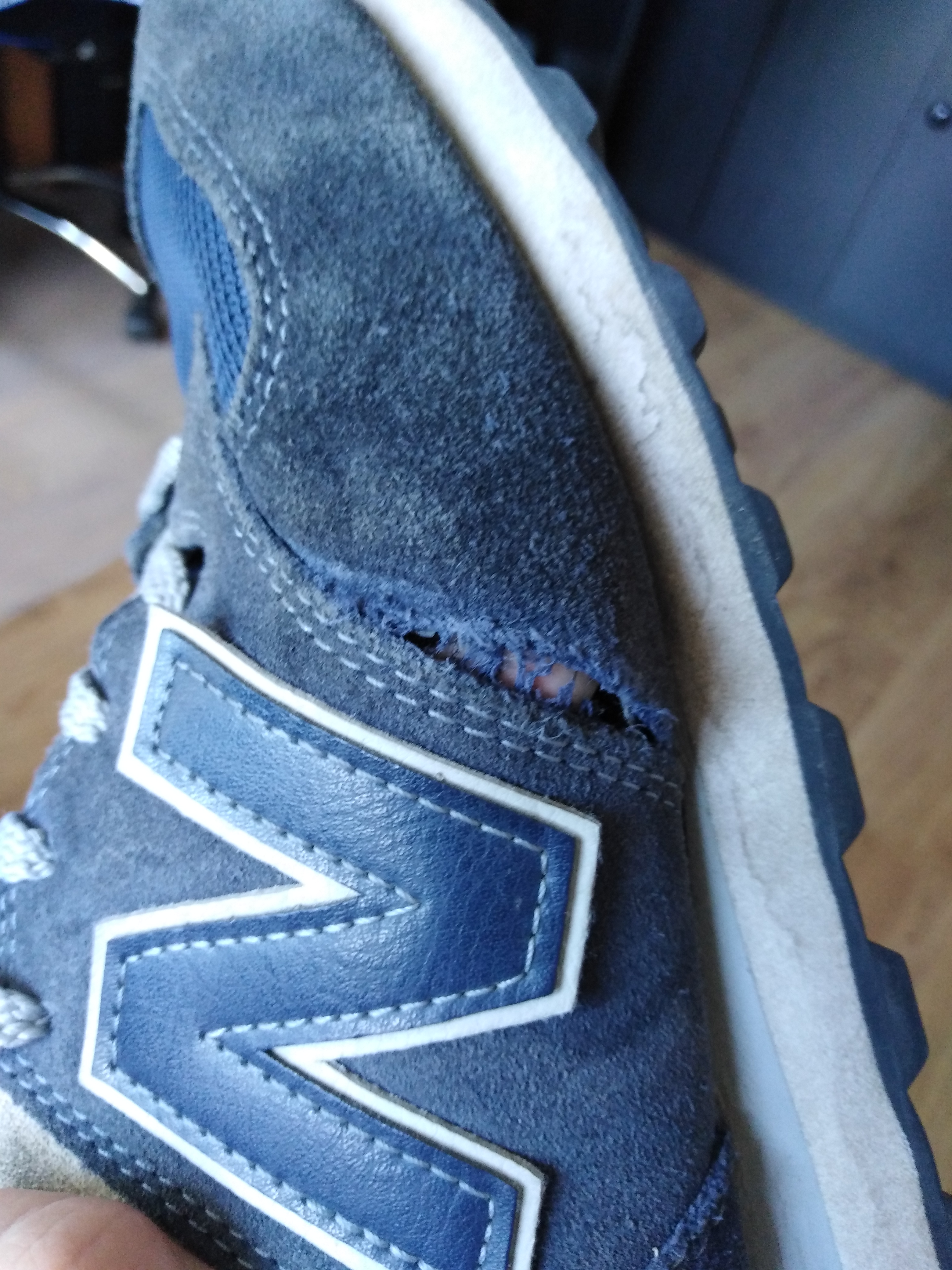 Wygląda to tak, jakby podłożono za mało materiałów przy szwie. Po nie uznanej reklamacji, złożyłem odwołanie do sklepu New Balance Olsztyn. W dniu 1 lipca dostałem sms-a, że reklamacja została uznana i mogę wymienić buty na nowe.