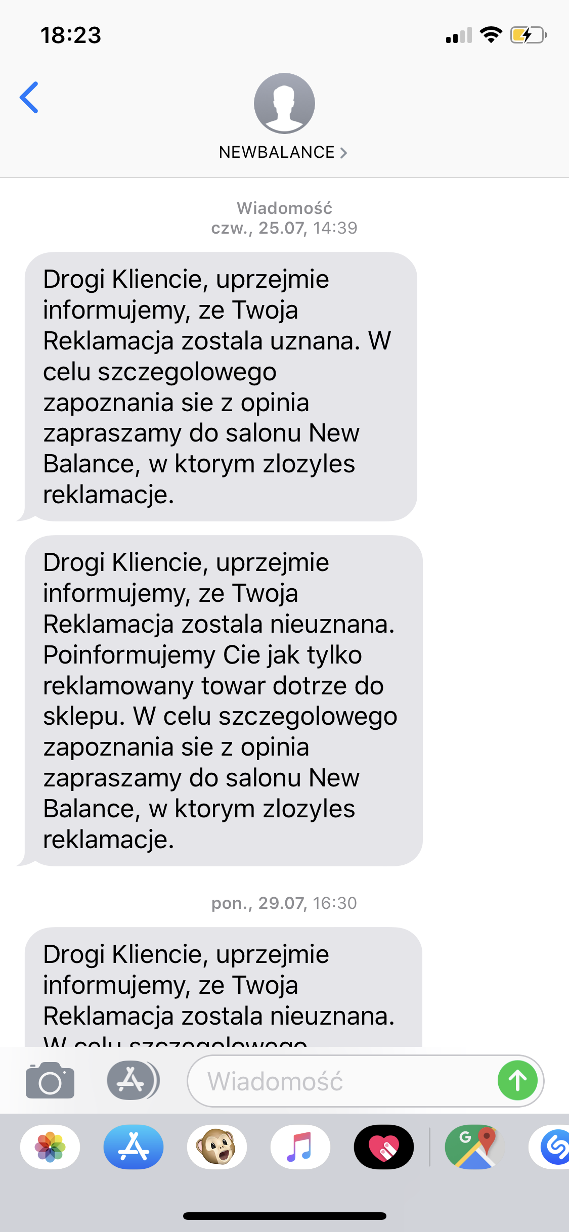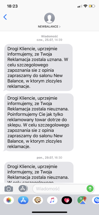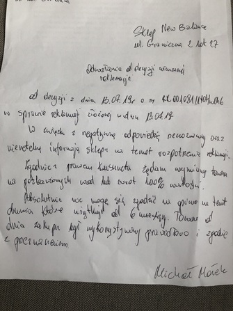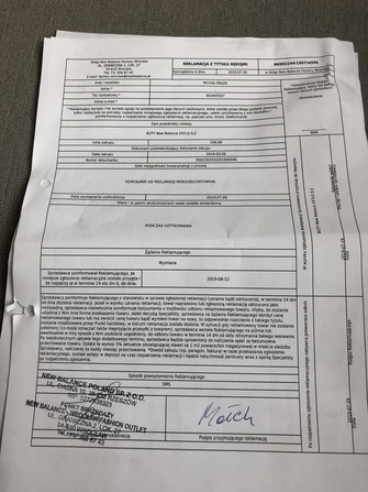 Rzeczoznawca skupił się na przedartych zapiętkach, nic nie odpowiedział w sprawie odklejenia się podeszwy na przodzie. Na początku otrzymałem informacje, ze reklamacja jest uznana i po kilku minutach, ze nie uznana za pierwszym razem. Sprzedawcy poinformowali mnie, ze omyłkowo wysłali wiadomość, ze została uznana. Więc złożyłem odwołanie i gdy otrzymałem informacje, ze reklamacja jest nie uznana, udałem się do sklepu. Kierownik salonu zdziwił się, ze przyjechałem po buty, skoro nie dostałem informacje, ze dotarły do salonu. Po czym udała się na zaplecze i znalazł buty.