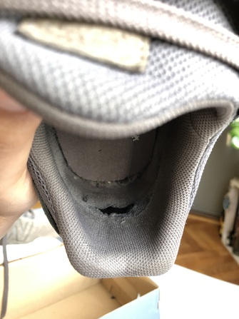 Przetarcie materiału na zapiętce, rozklejenie na czubkach