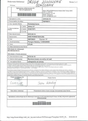 Odwołanie do reklamacji: RS/100/S263/04/16 złożonej dnia 2016.04.17 .Powodem złożenia było przetarcie materiału w obu butach w miejscu dużego palca.