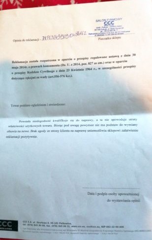 Kupiłam buty adidas za kwotę 199zl. P po niecałym tygodniu podeszwa od buta zaczęła się rozklejac. Zaproponowano mi naprawę buta, aż dziw że but adidas mógł rozkleic się po takim czasie, sklecić mogłam je sama i bez czekania dwa tygodnie na ogledzinach :)