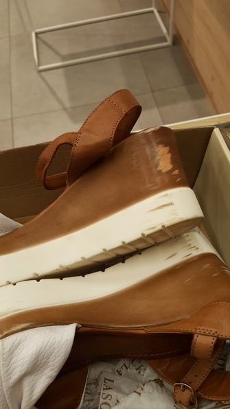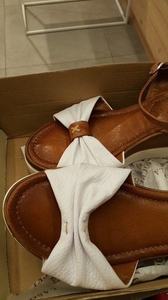 Od sandałów odpadł element -kokardka. Z obcasa zeszła farba mimo normalnego uzytkowania.