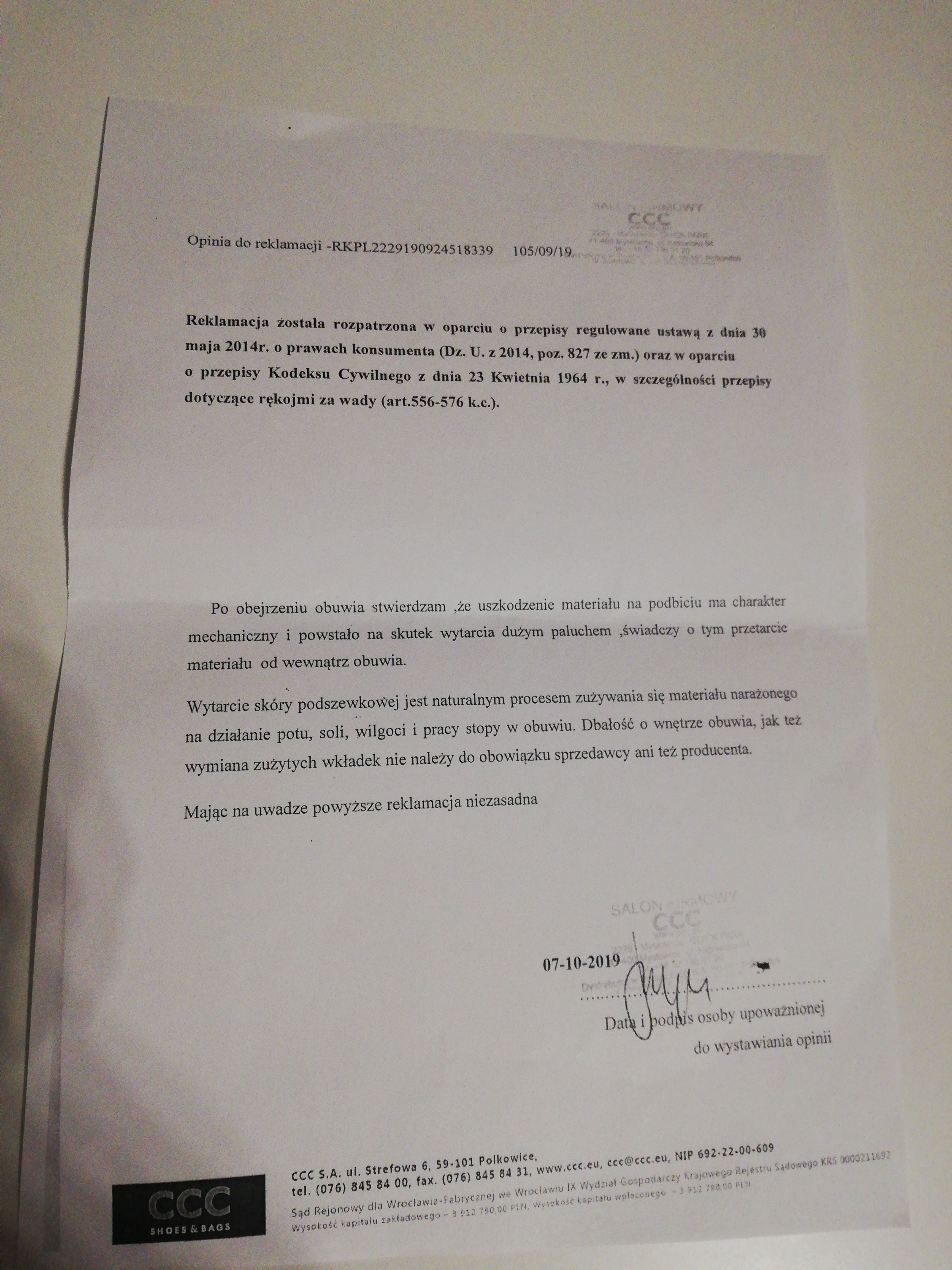 Reklamacja nie uznana but nie został oceniony przez rzeczoznawcę a P kierownik na zapleczu brak pieczątki rzeczoznawcy. Odwołanie.