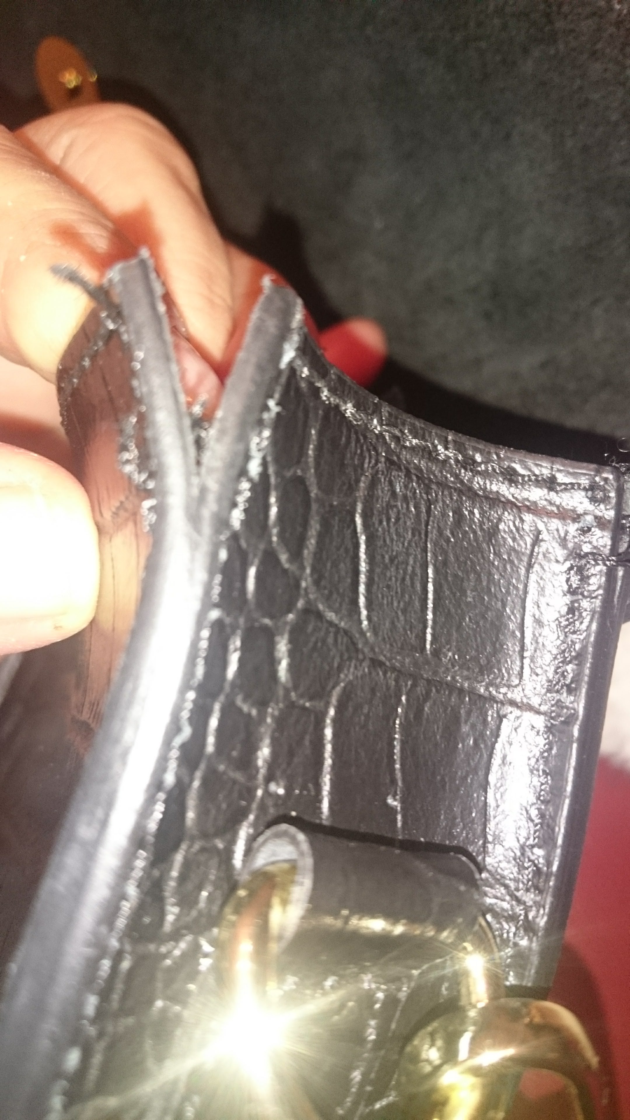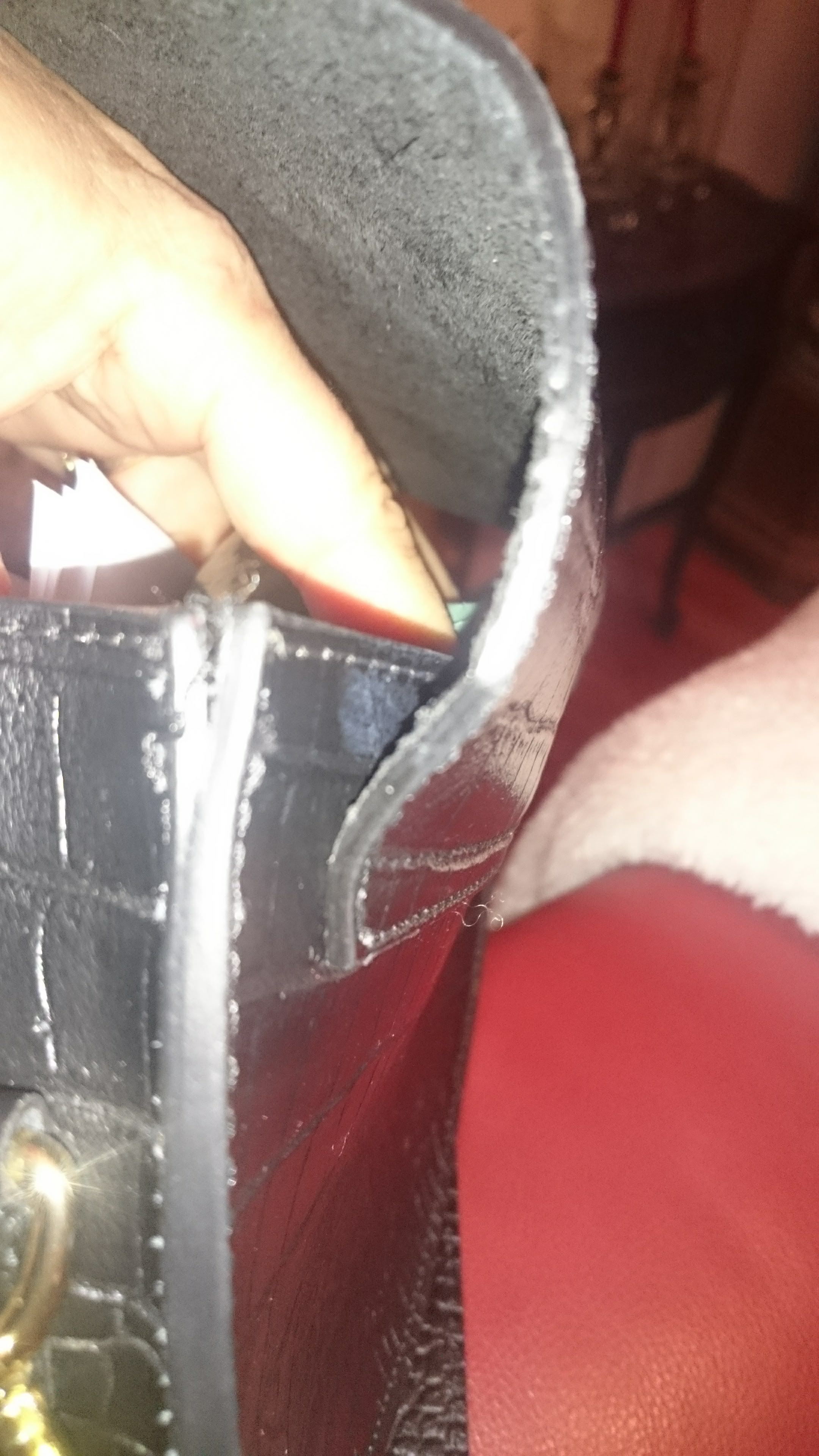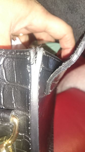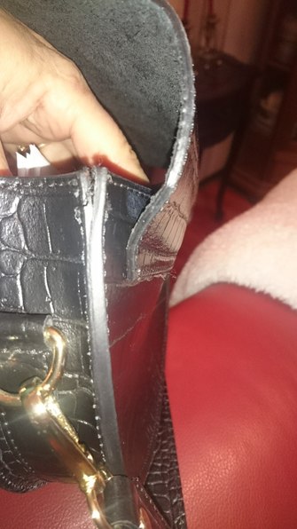 Boki torebki połączone masą gumową rozerwały się. Popruły się nici.