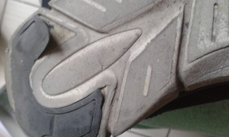 odklejenie gumowego elementu w podeszwie jednego prawego buta
