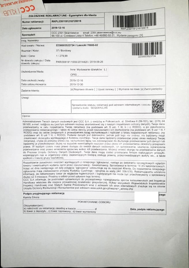 Twojej reklamacji do ogólnodostępnej bazy reklamacji czyuzna.pl.
