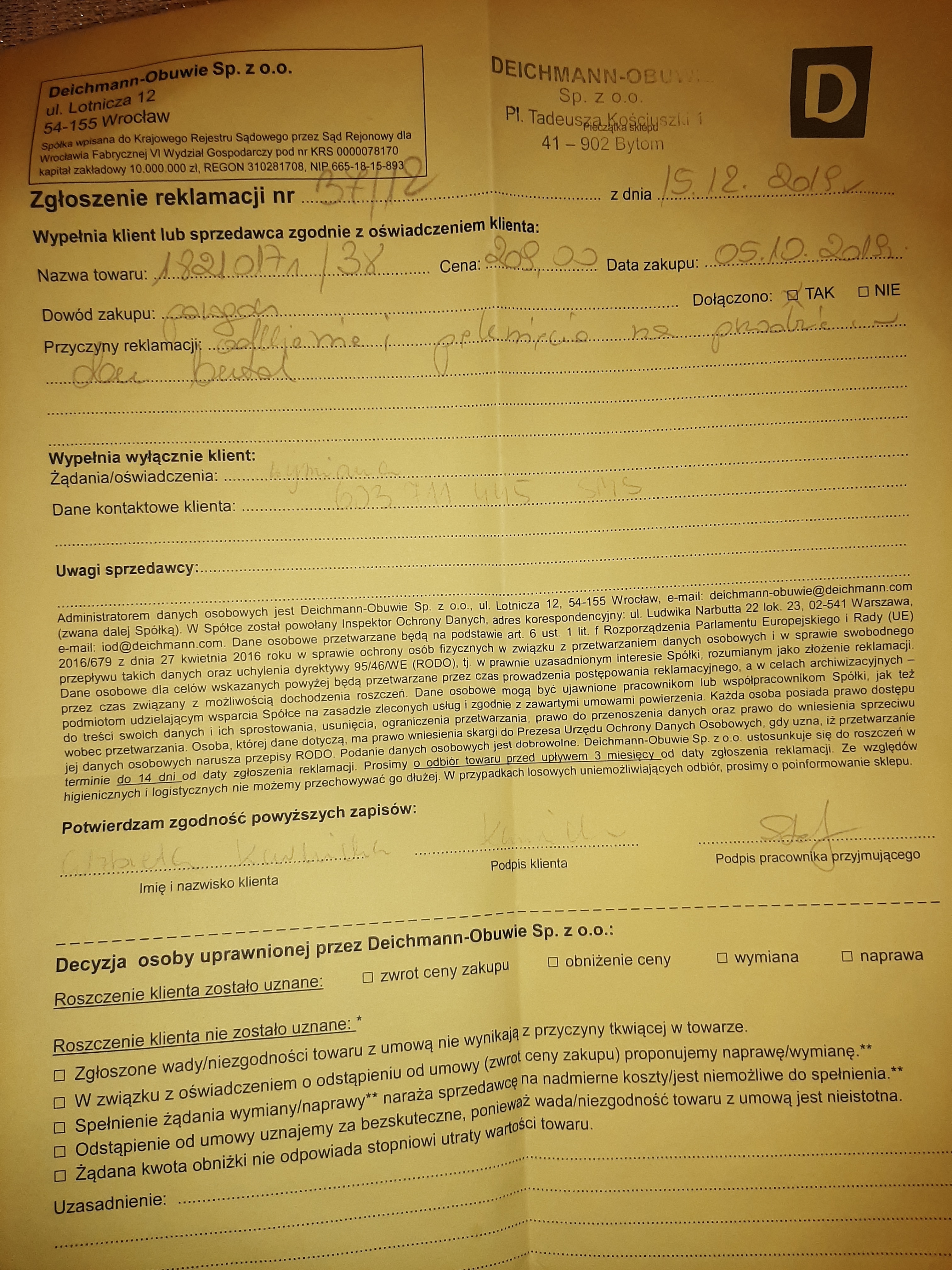 zgłoszenie 757/2019/Deichmann Obuwie Sp. z o.o.