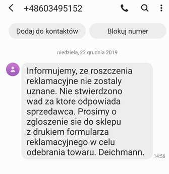 Nie zgadzam się z uzasadnieniem nie uznania reklamacji.