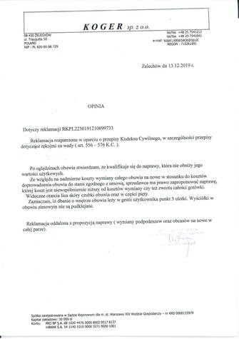 Twojej reklamacji do ogólnodostępnej bazy reklamacji czyuzna.pl.