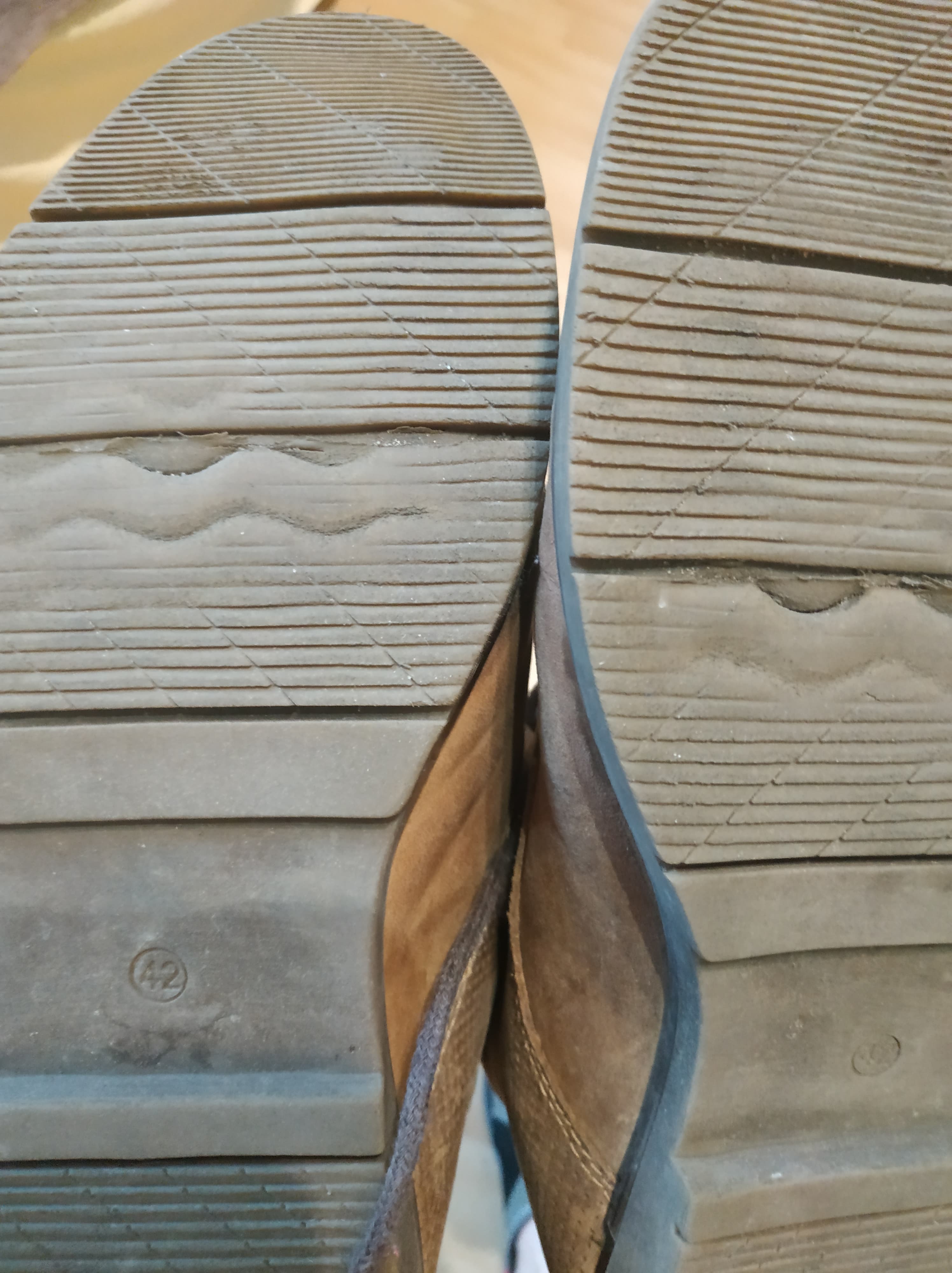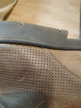 Pęknięta podeszwa, uszkodzona lamówka w obu butach