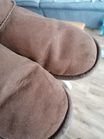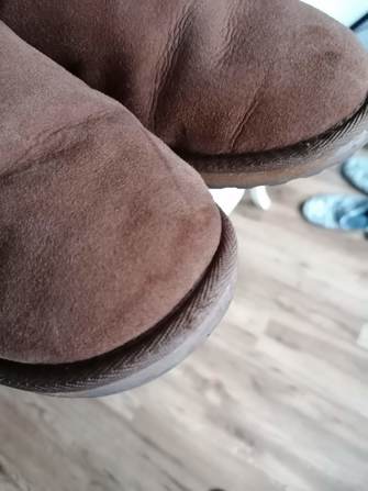 sprzedawca twierdzi, że buty nie zostały zaimpregnowane mimo że przed pierwszym użyciem zaimpregnowałam je oryginalnym preparatem Emu który zakupiłam razem z butami, twierdzi też że pomarszczona skóra to nie wada . Dwa pierwsze zdjęcia zrobione są zaraz po zaimpregnowaniu - buty schły 24 godziny jak zaleca producent. Dwa kolejne po 2 miesiącach normalnego użytkowania (ani razu nie ubrałam ich w deszczowej pogodzie, jedynie chodziłam po śniegu w suchej pogodzie).
