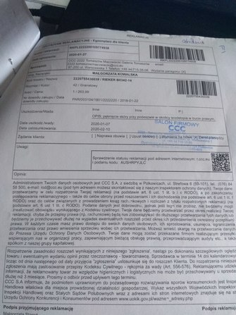 Twojej reklamacji do ogólnodostępnej bazy reklamacji czyuzna.pl.